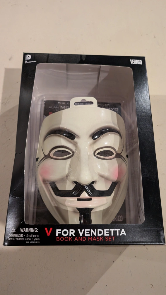 V For Vendetta Book and Mask Set, from DC Comics and Vertigo. retails for about $48 incl. tax. selling for $30. Box has some slight damage but mask and book are in new condition. Pickup in SW Calgary