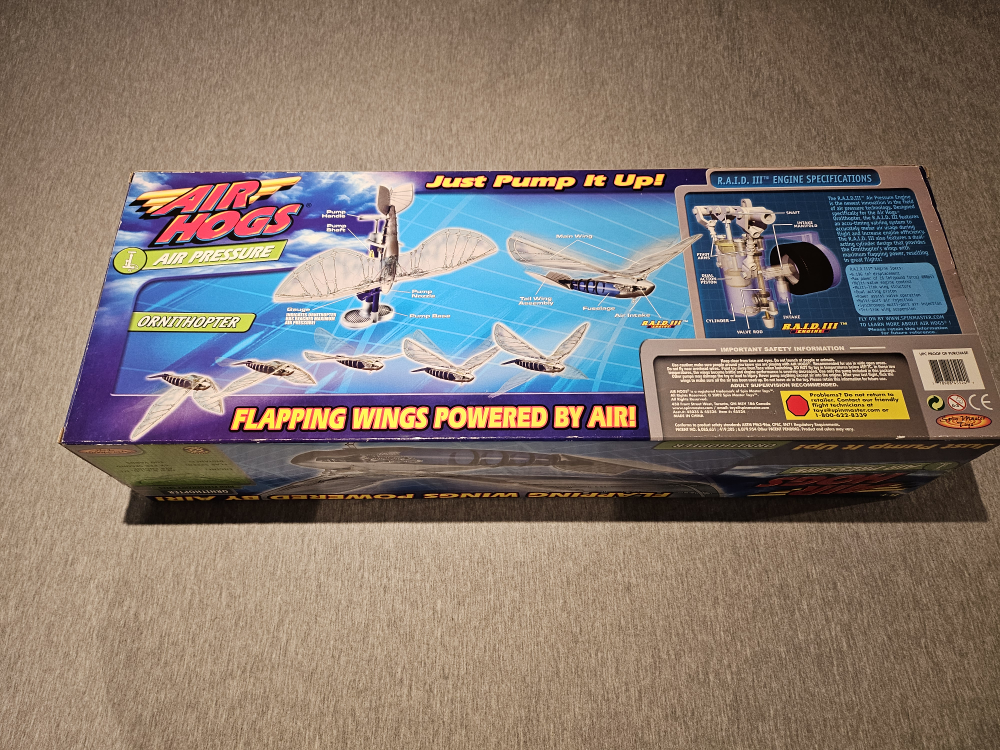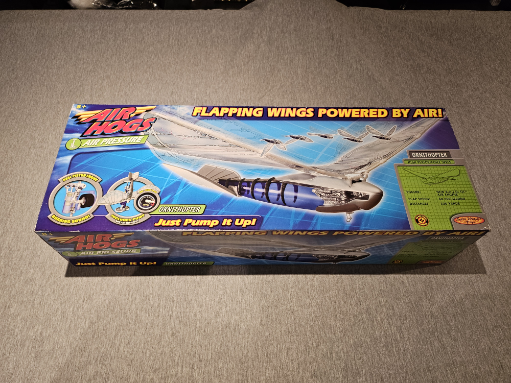 A flying toy that uses air pressure to power its flapping wings. New In Box.