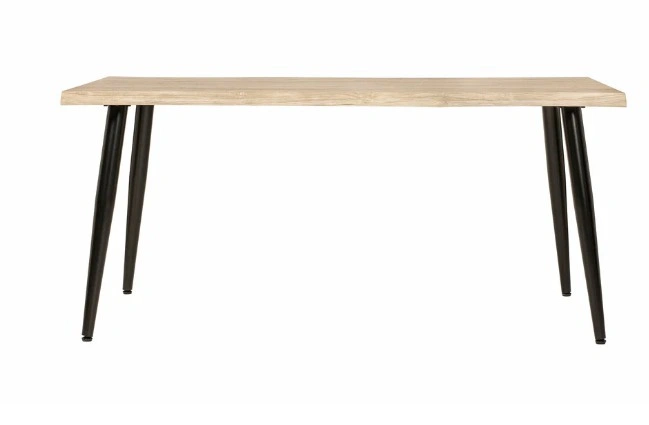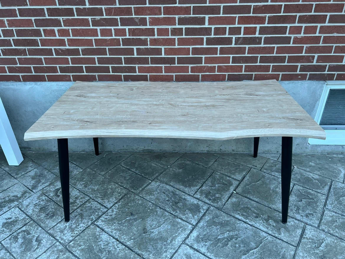 A beautiful live edge table with black metal legs. It is a great size for a small dining room or a workspace. It is in great condition and comes with with the assembly manual.
