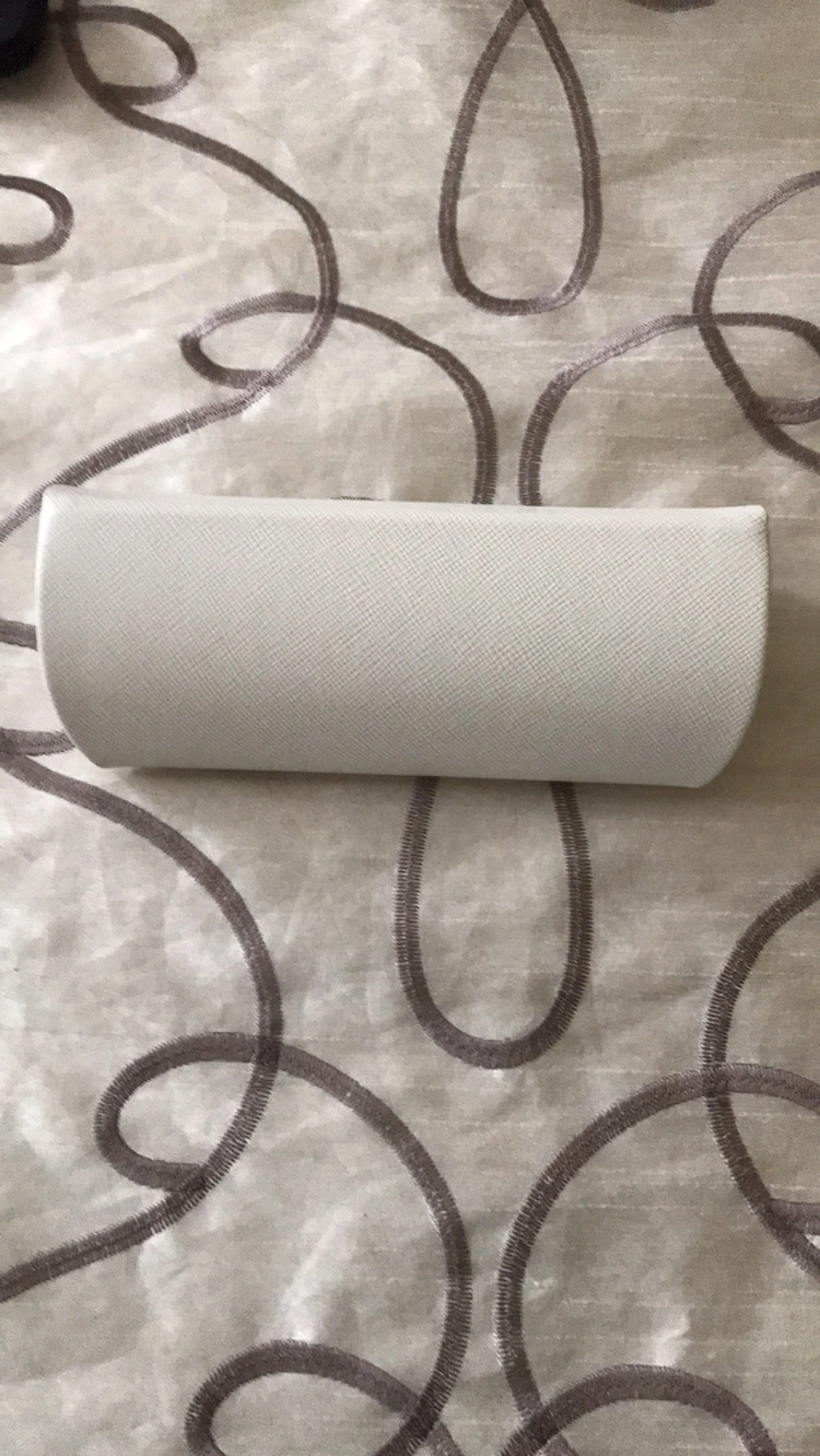 White leatherette glasses case.