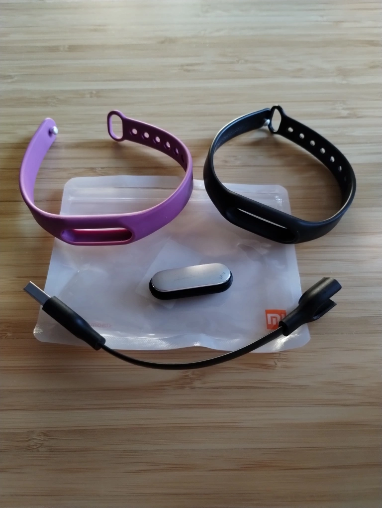 Mi Band 2 with black and purple straps. It comes with the charger. I haven't used it in over a year and didn't know how to get it set up again. I see that it does charge but I can't get it to connect to the Zapp Life app. It's suppose to be able to track your steps, calories, walking distance, sleep health, heart rate, and more. Feel free to pick it up if you can make use of it