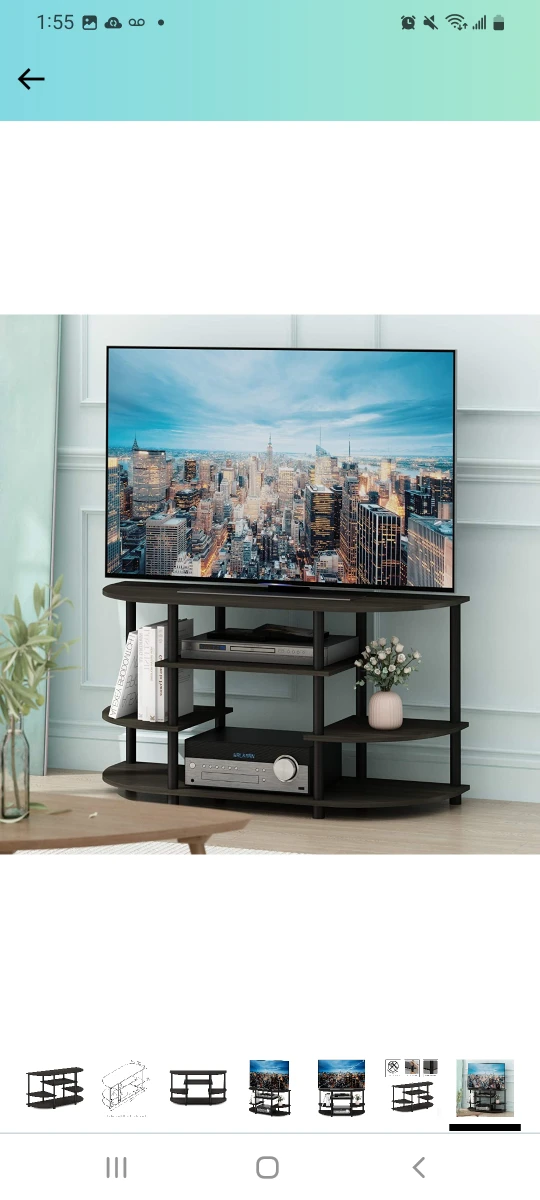 * Simple stylish design yet Functional and suitable for up to 44-inch flat screen panel TV. * Material: made from composite wood and PVC tubes. * Fits in your space, fits on your budget. *Features Plenty of storage spaces for Media equipment and accessories. * Sturdy on flat surface. Easy 10 minutes assembly. Please see instruction. * Product Dimension: 42.04(W) x 22.75(H) x 15.55(D) inches.