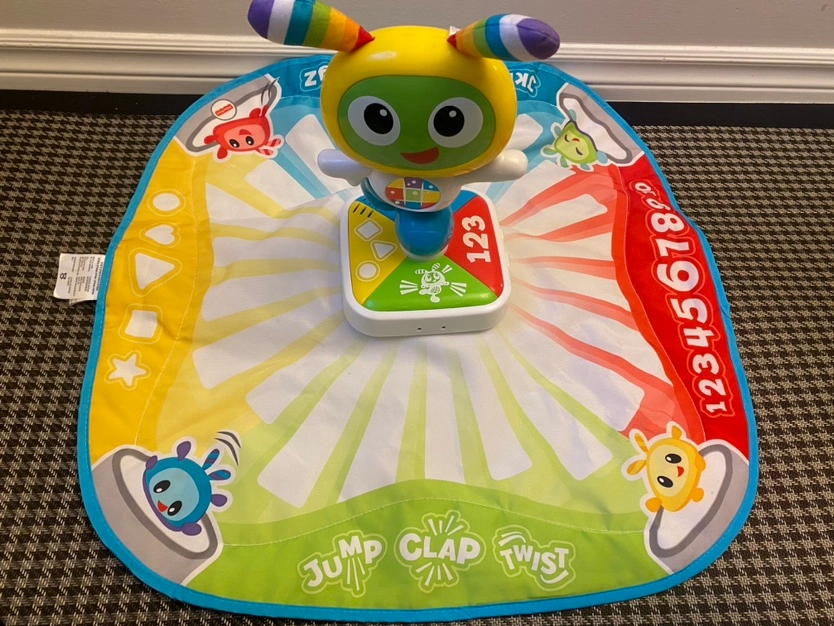 This interactive toy encourages babies to stand and dance, with lights, music, and sounds that stimulate their senses. Jump, clap and sing with the cute interactive robot.