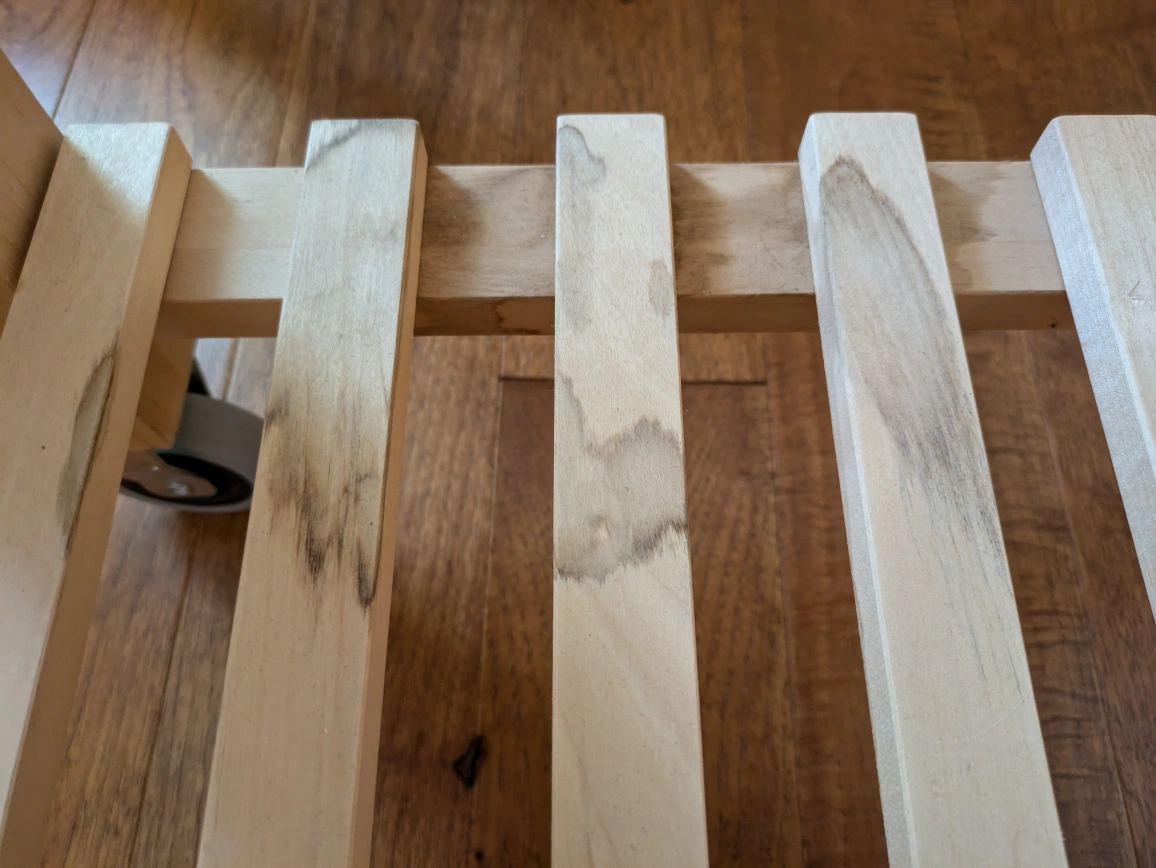 Kept in great condition, only aesthetic issue is an old coffee stain on the bottom shelf (see last photo).