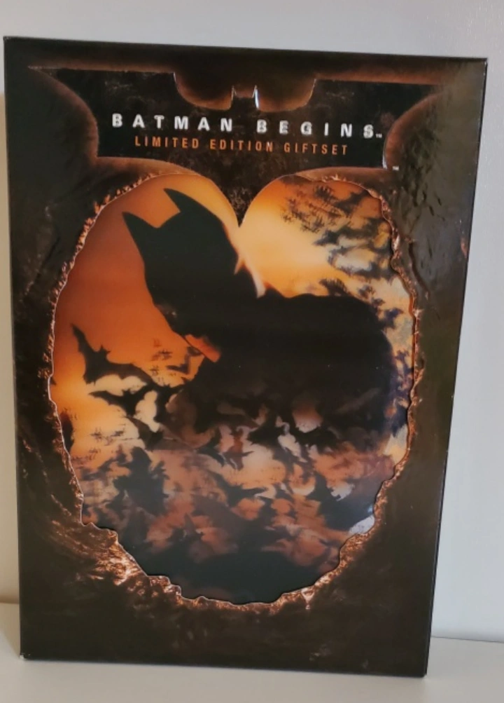 This set includes the DVD of Batman Begins, a metal keyring, a collectible folder, and a promotional DVD of The Dark Knight with a motion picture. All set in one package.