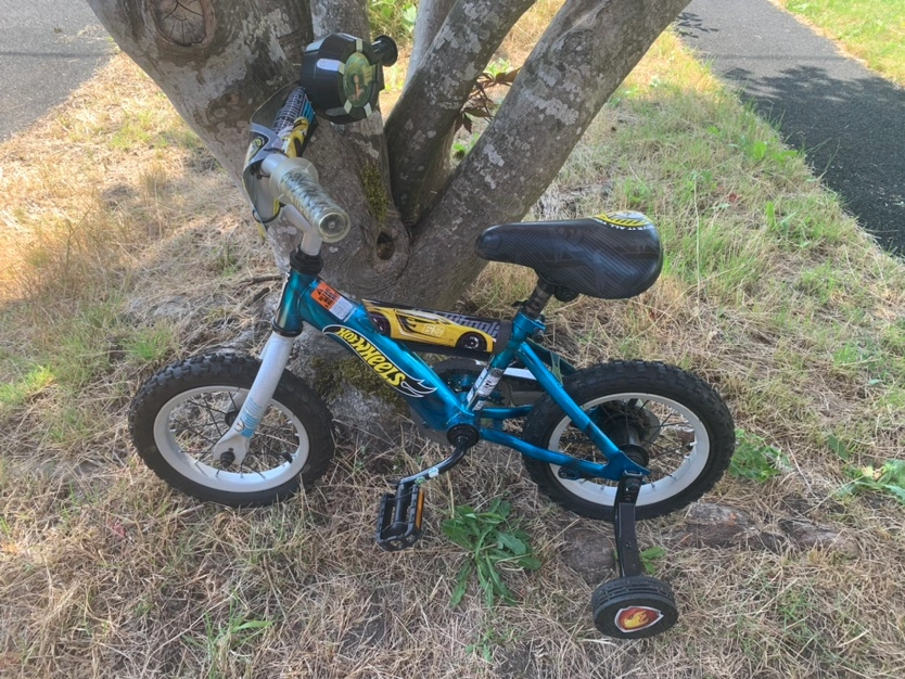 Blue Hot Wheels bike with training wheels, toy accessory speedometer (no batteries needed). If your little one they didn’t transition from a balance bike and just want to get into one with training wheels I am open any fair offer. This is in the perfect way develop your little ones sense of balance, motor skills and coordination. I would like the new owner to put this well loved bike to good use.