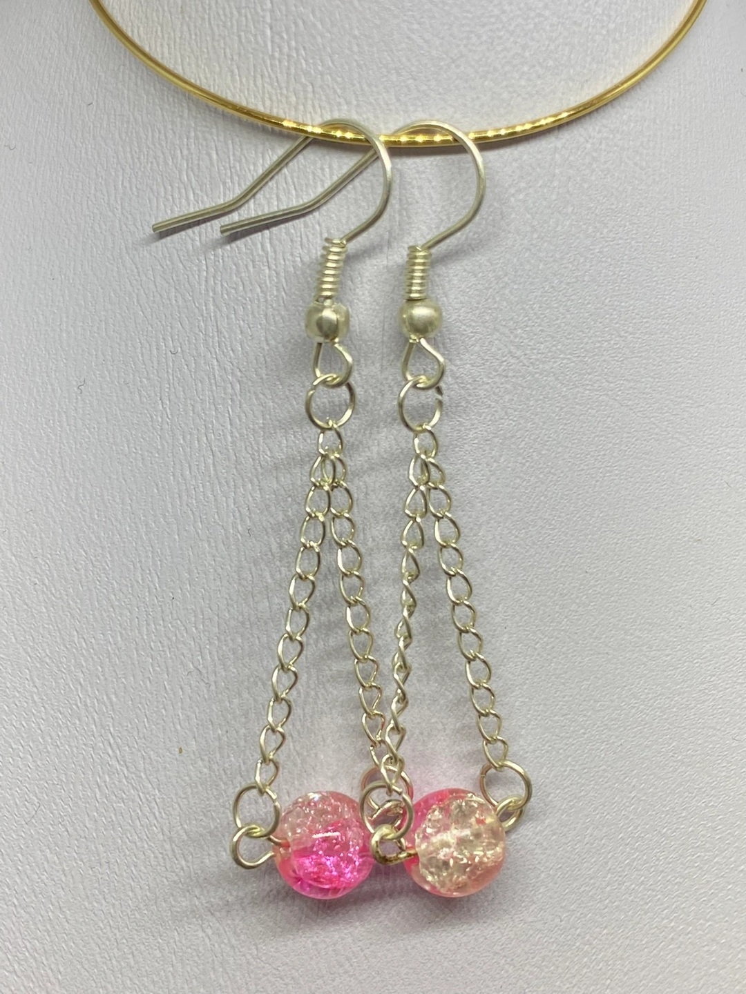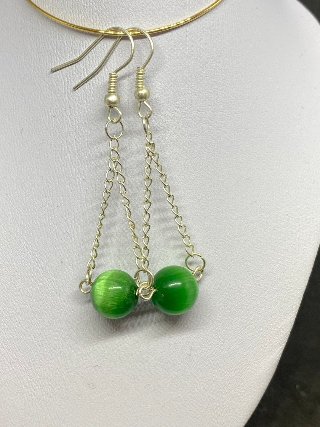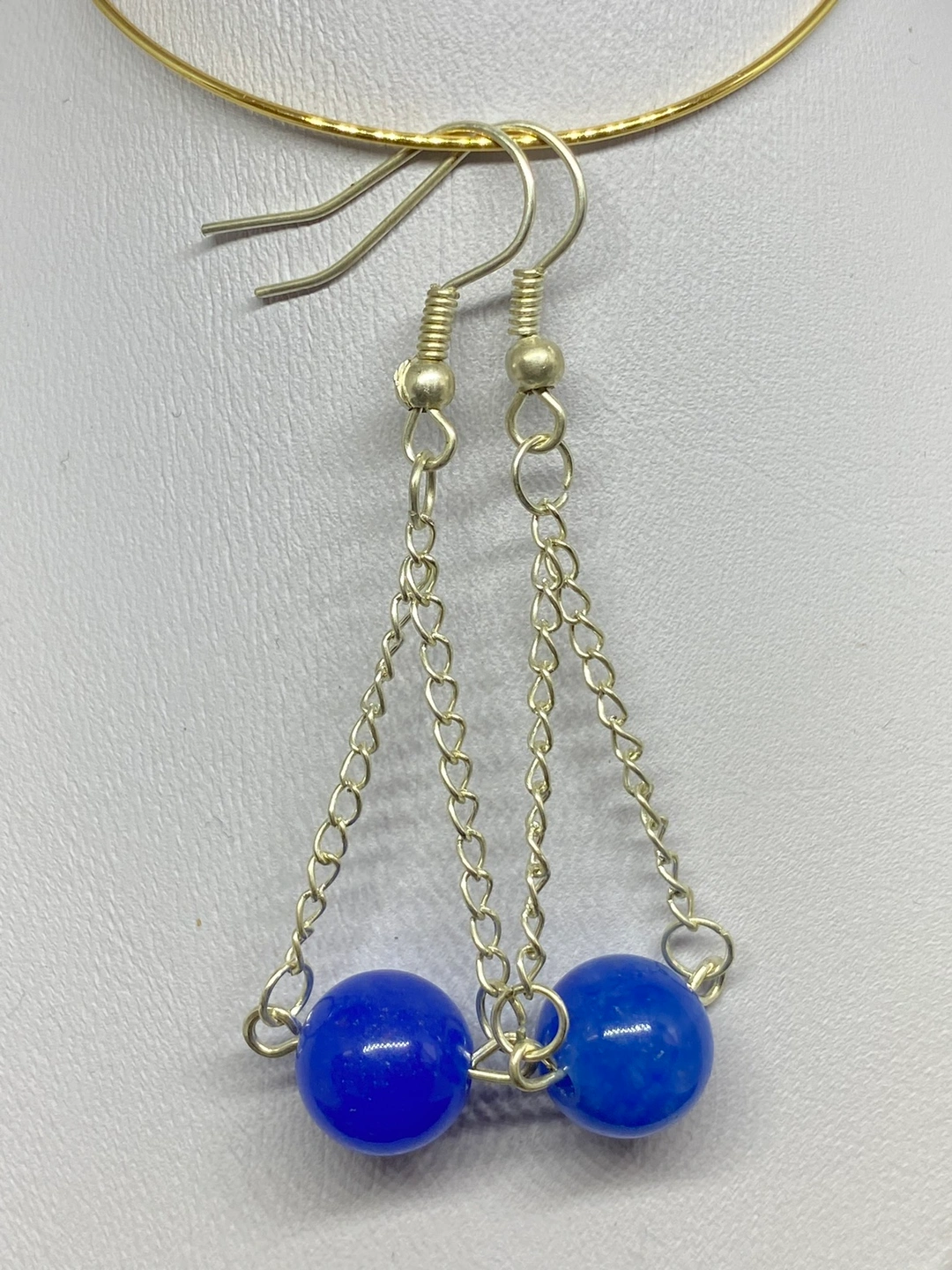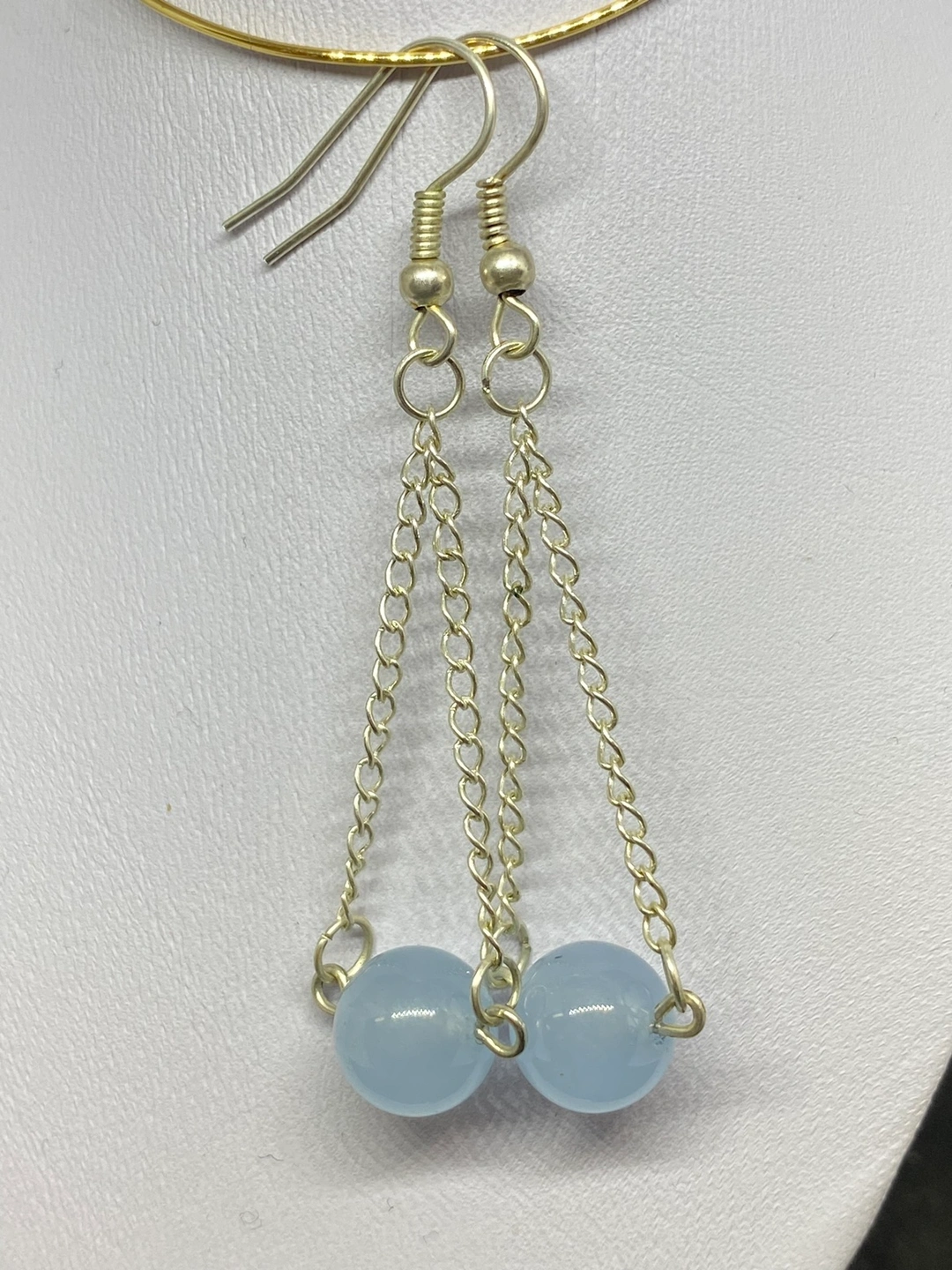 These earrings are made with silver chains and a round semi precious beads . They are lightweight and comfortable to wear. They come in three colours. They are perfect for everyday wear. They would also make a great gift. I can also customize the bead. Message me for more details
