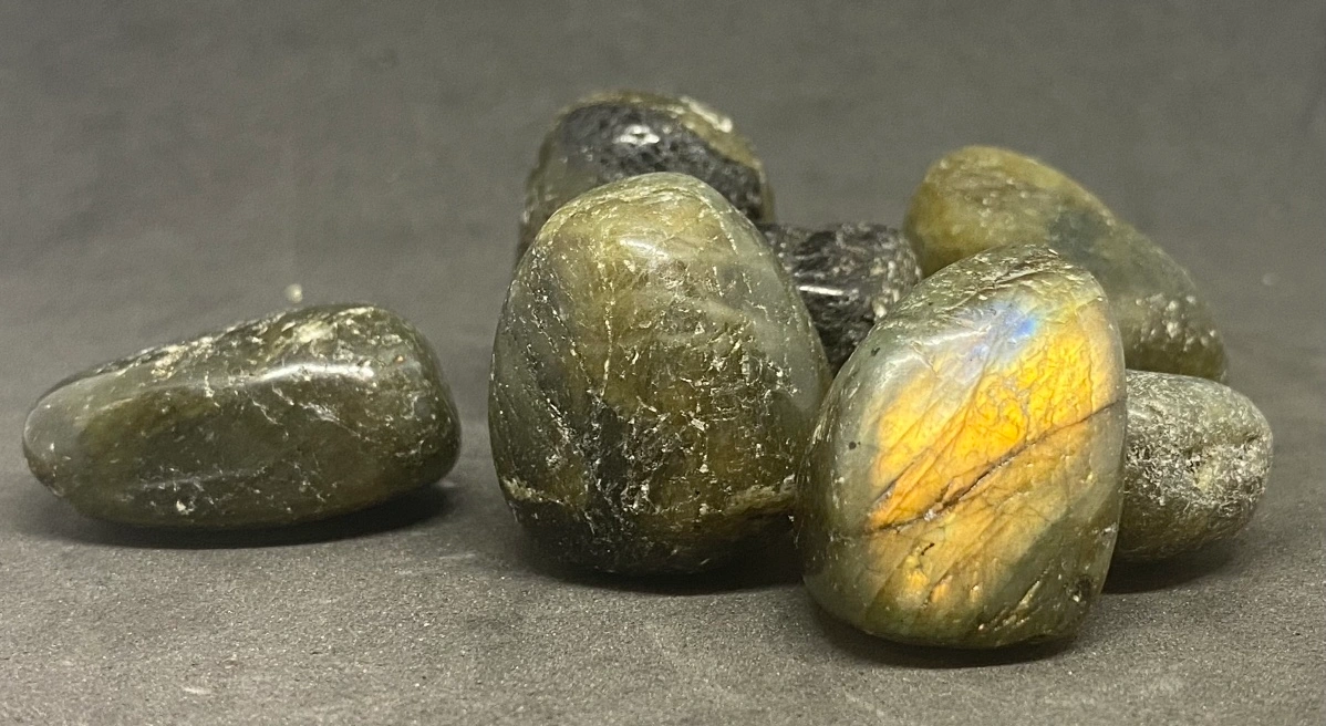 Tumbled labradorite stones. Each stone has a unique iridescent sheen. Great for decoration or crystal healing. $5.00 each