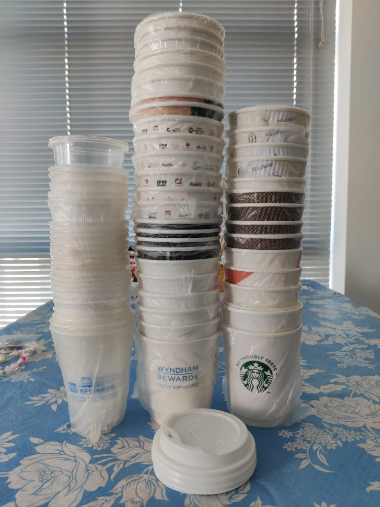 A bundle of disposable coffee cups. Great for events or daily use.