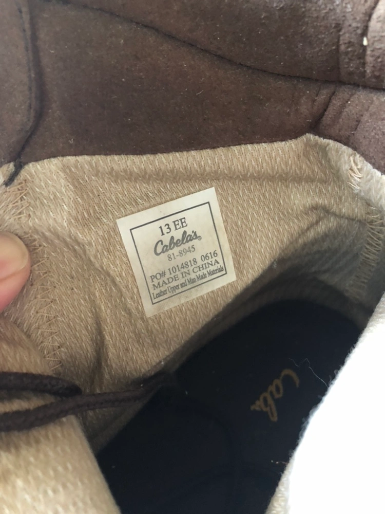 Cabelas men's boots Outfitters series size 13 EE - Extra Wide Worn once. See photos. Like New: no sign of wear no rips, holes, stains, etc. Nubuck Leather with a Vintage Look Finish Gortex Lined Vibran sole Waterproof With box. But box is worse for wear due to other uses. ⭐️ Smoke free and pet free household