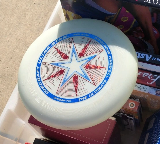 White disc with red and blue star design, made in the USA. 175-gram disc. UPA approved. The ultimate disc. Never used ⭐️ Smoke free and pet free household