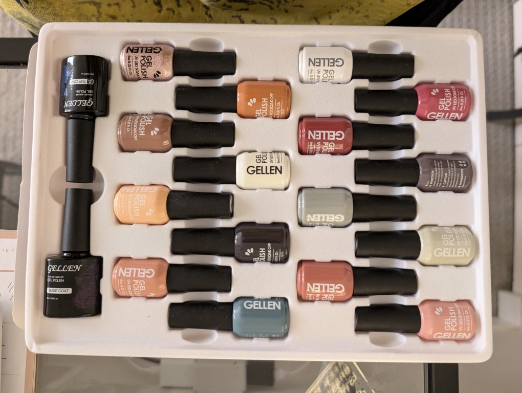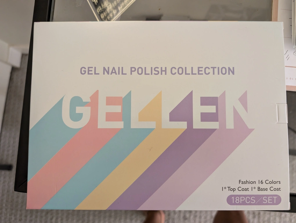 Set of 18 Gel Nail Polishes including 16 colours, 1 top coat and 1 base coat. brand new,I ordered it by mistake and unable to return