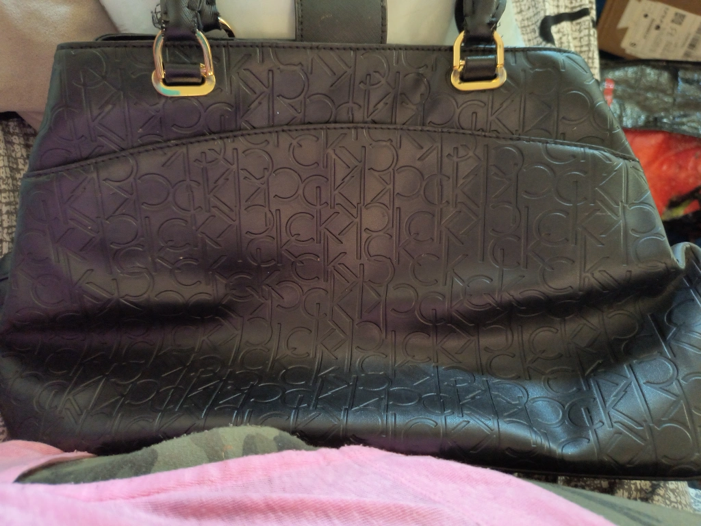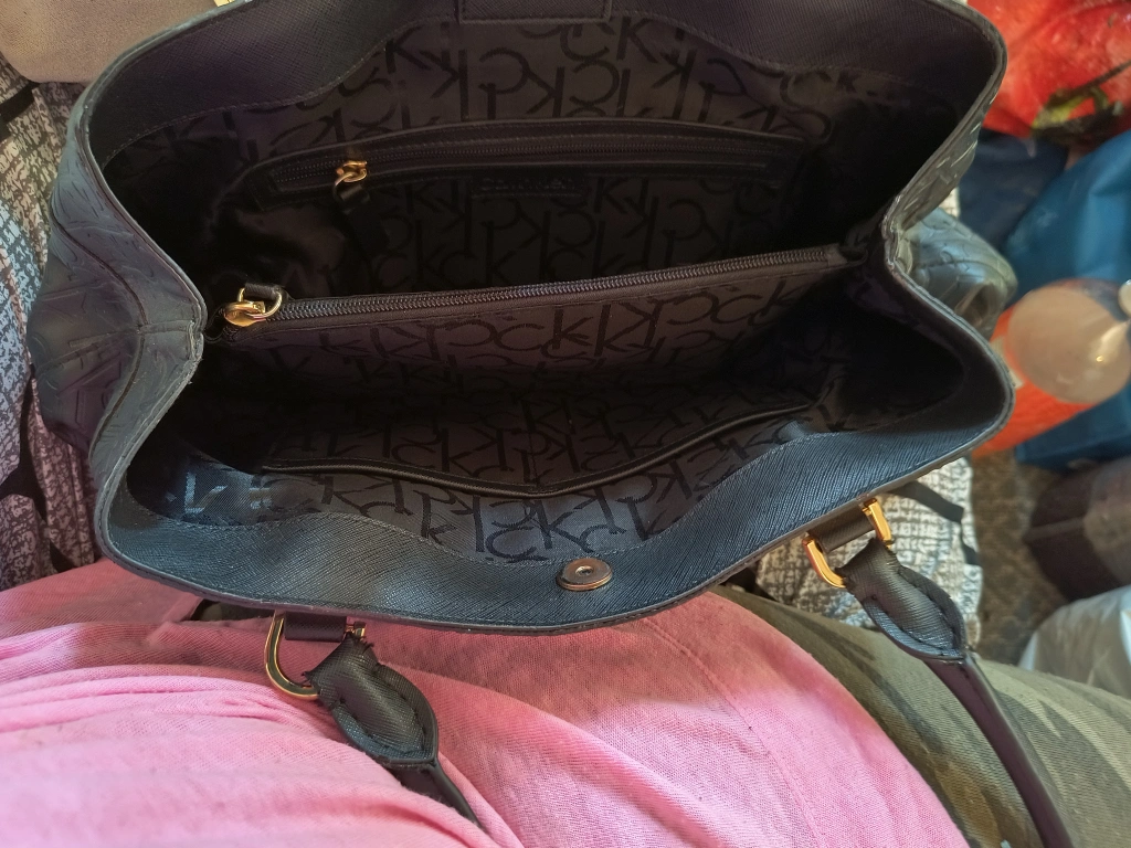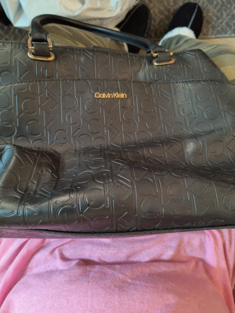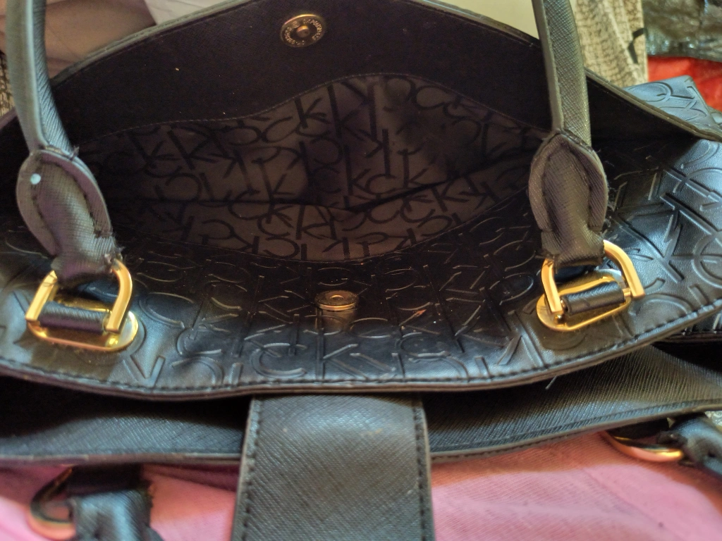 541Black Calvin Klein handbag with gold accents. Has one large zippered pocket and one small slip pocket inside. The bag is in good condition. there are signs of cosmetic wear, but not noticeable unless you're looking for it. $25 firm.