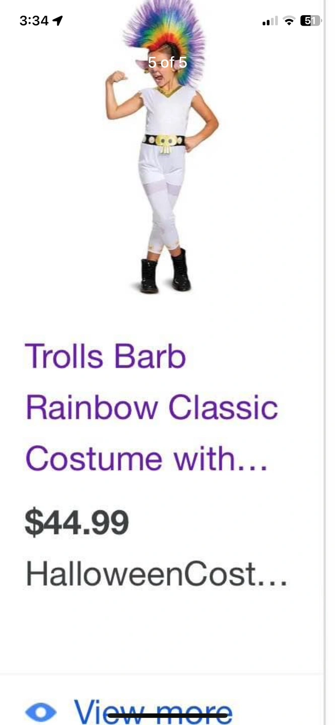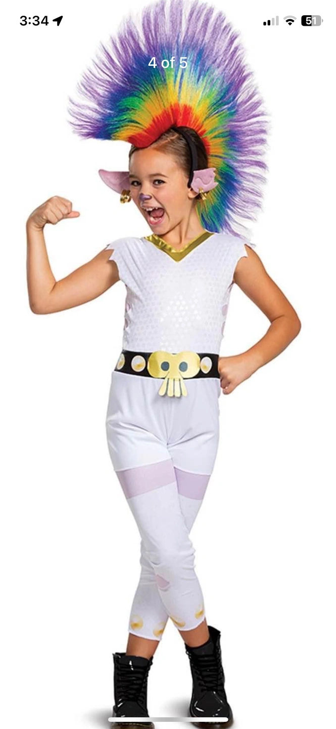 Kids Trolls World Tour Barb Costume size 6-8. Like new. Tried on, picture was taken then stored. Includes jumpsuit, headband, and ears. Guitar was extra but willing to throw into the pkg. Paid $50 with everything. No pet or smoking household. Pick up in Scenic Acres NW