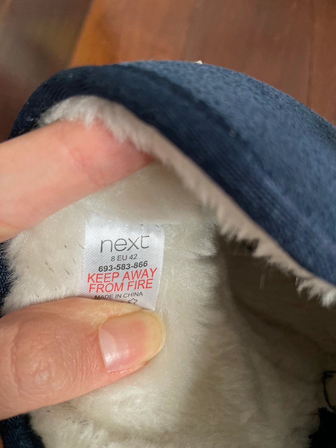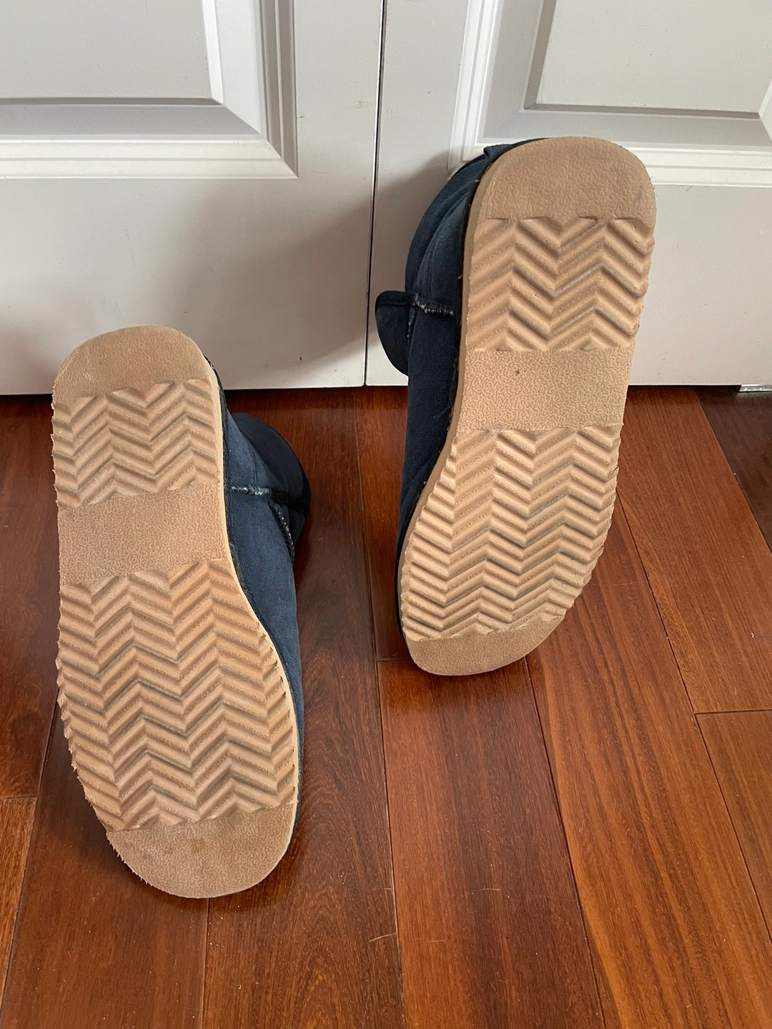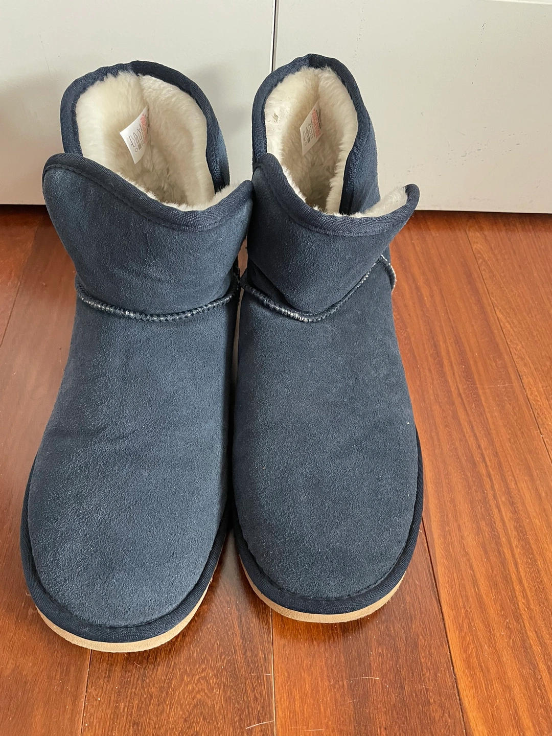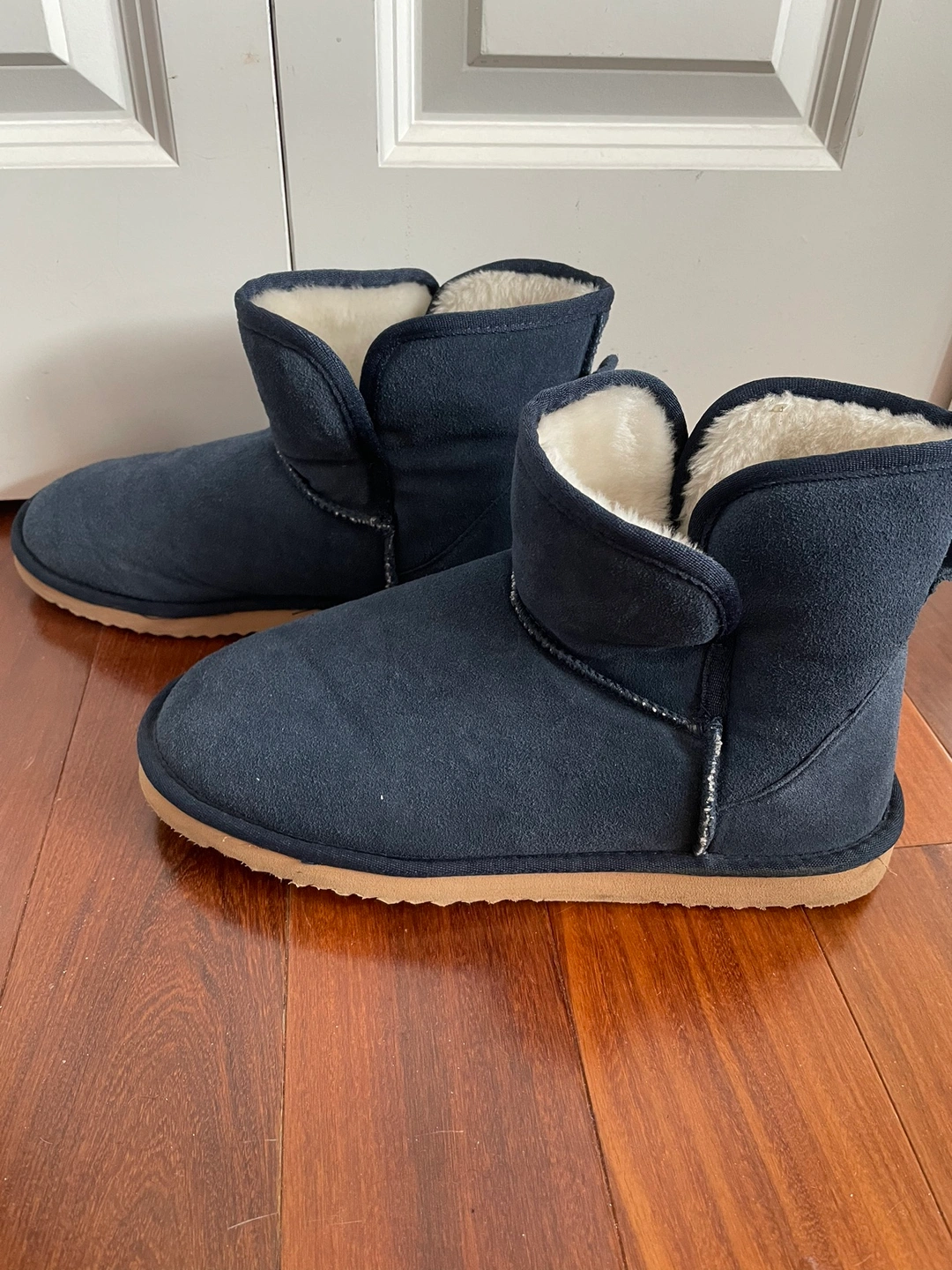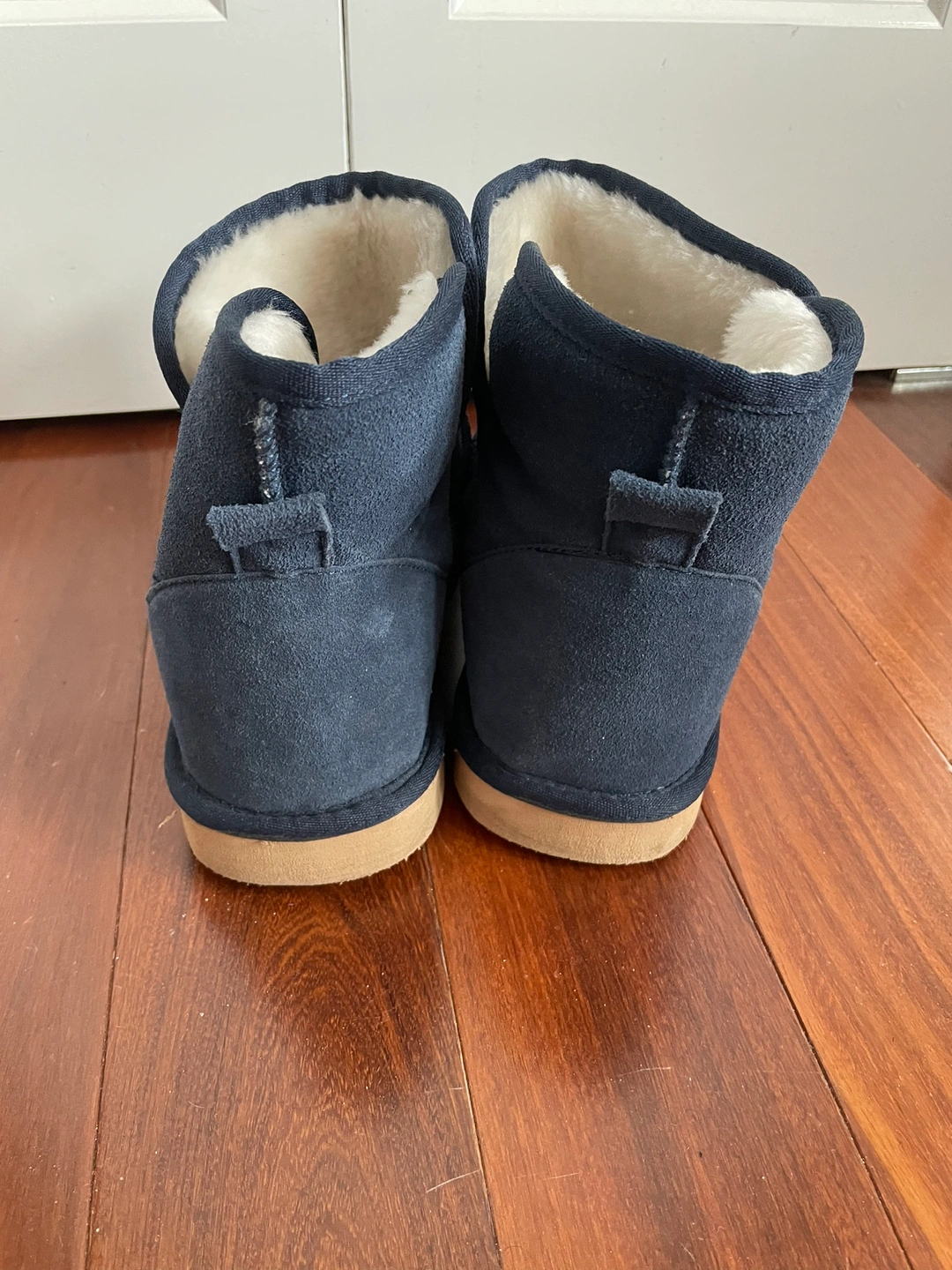 •These are a pair of navy blue faux suede boots with a faux fur lining.