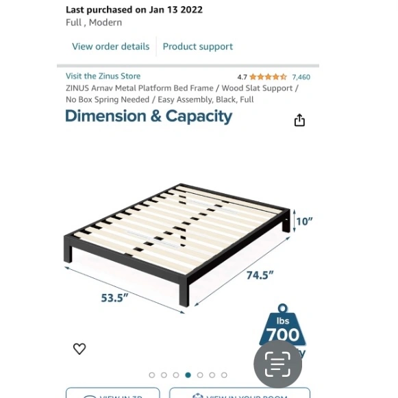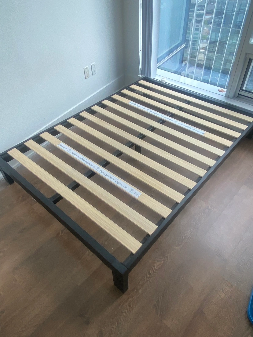 Very sturdy platform bed frame. Fits rolling bins underneath, and still sits at a comfortable height without a boxspring. No squeaking and quiet.