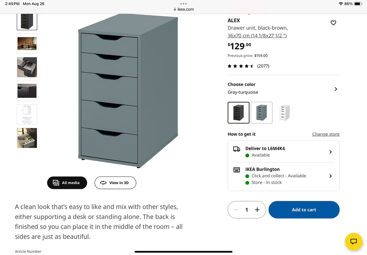 5 Drawer cabinet from IKEA -Grey-turquoise