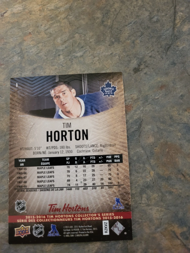 311A Tim Horton hockey card from the 2015 Upper Deck series.