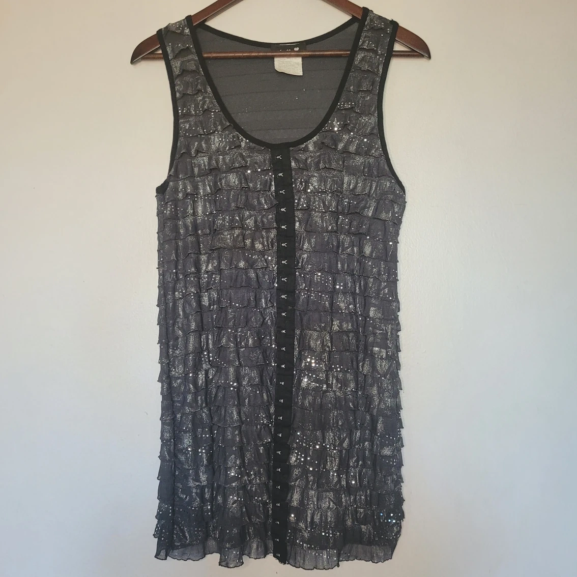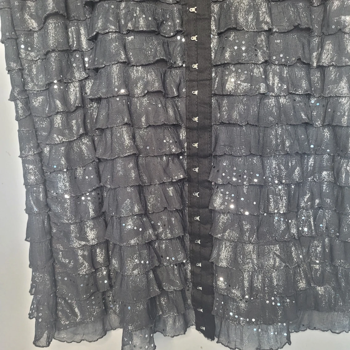 Black Shimmery Ruffled Top Size Small Never worn, in Great Condition