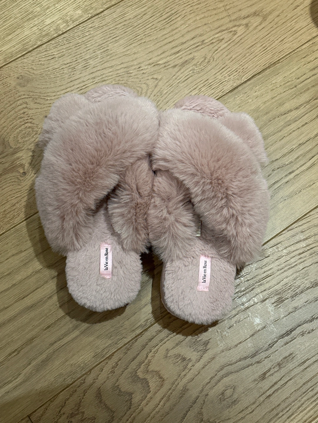 486Pink La Vie en Rose slippers with a fuzzy texture.