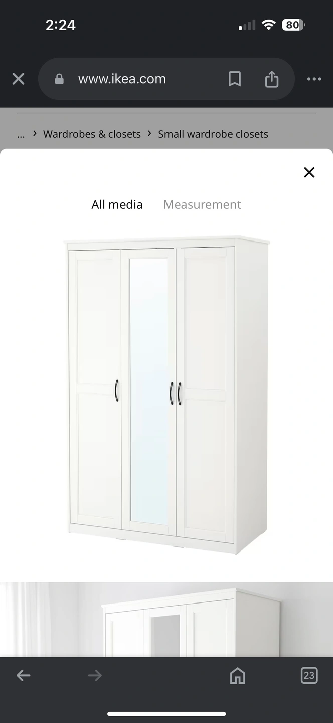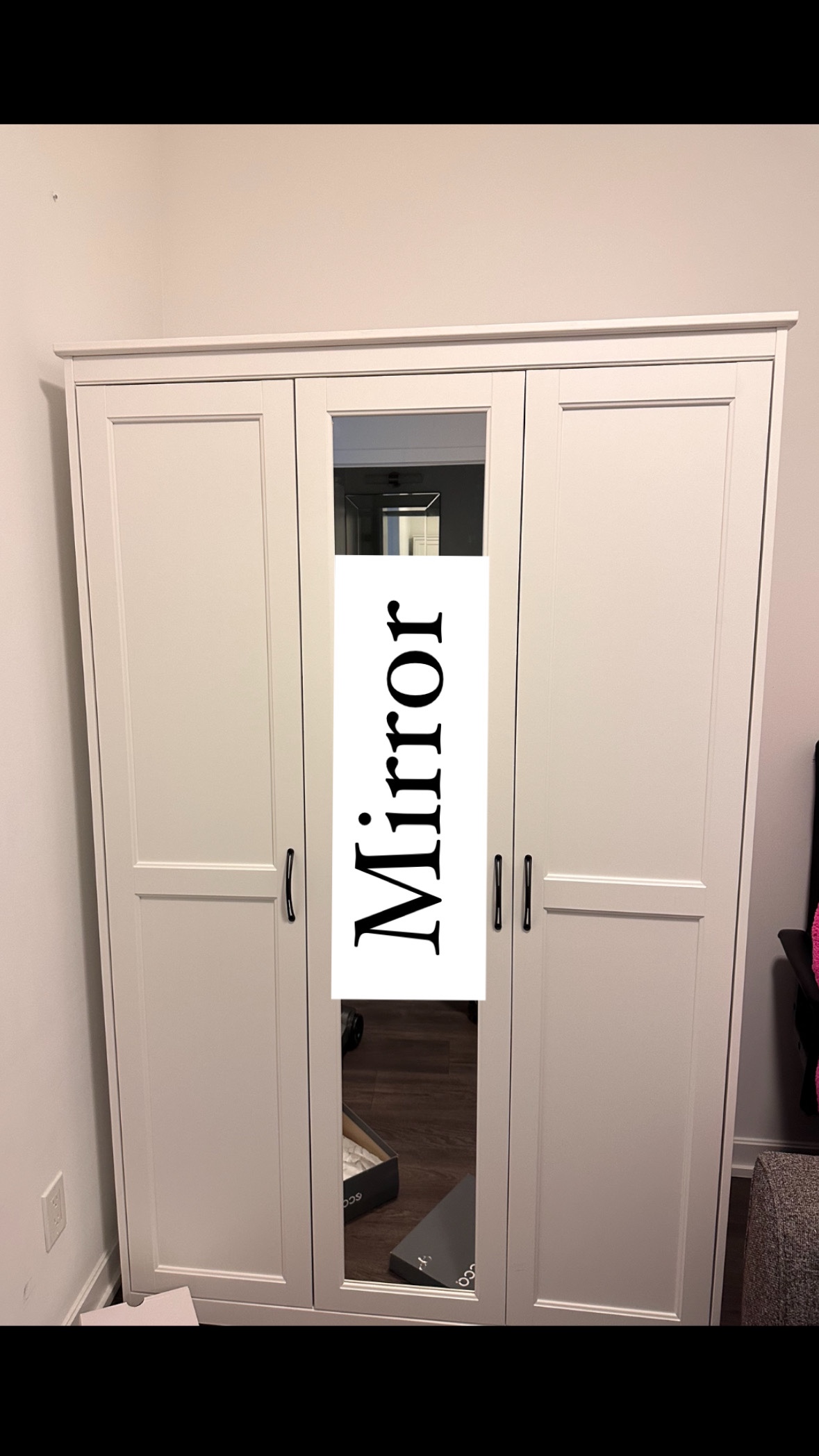 A mirrored door saves space, no need to take up room on the wall or floor with a separate mirror.