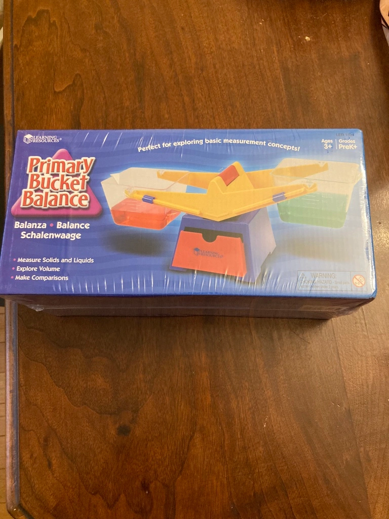 927A Learning Resources Primary Bucket Balance. Perfect for exploring basic measurement concepts. Includes two buckets, a balance beam, and weights. This is brand new in sealed box. Great as a birthday present! Costs $40 new ( see pic # 2)