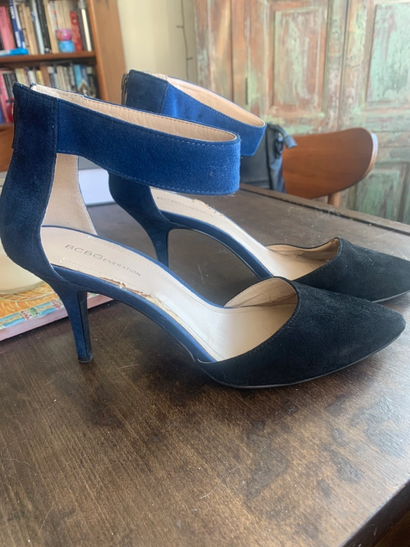 BCBG Generation Blue and Black ankle strap Heels