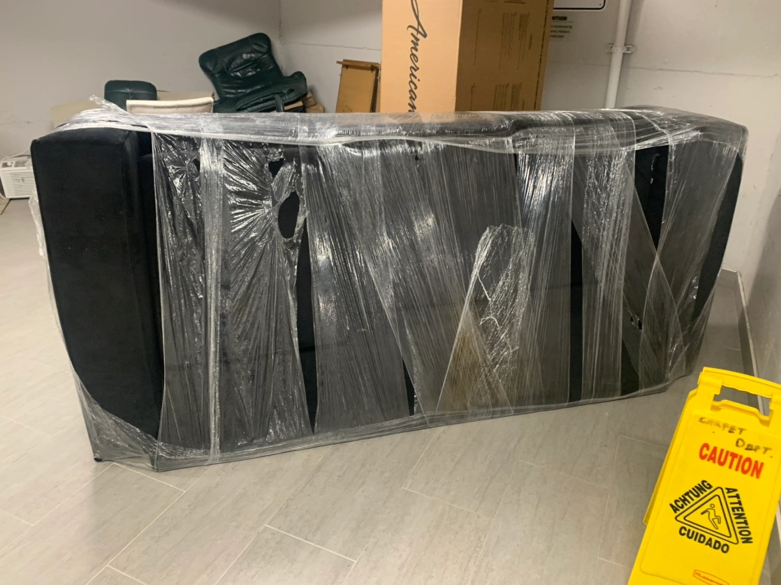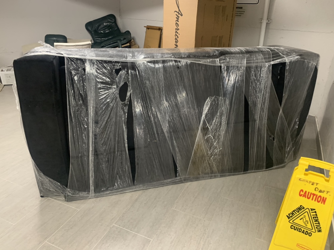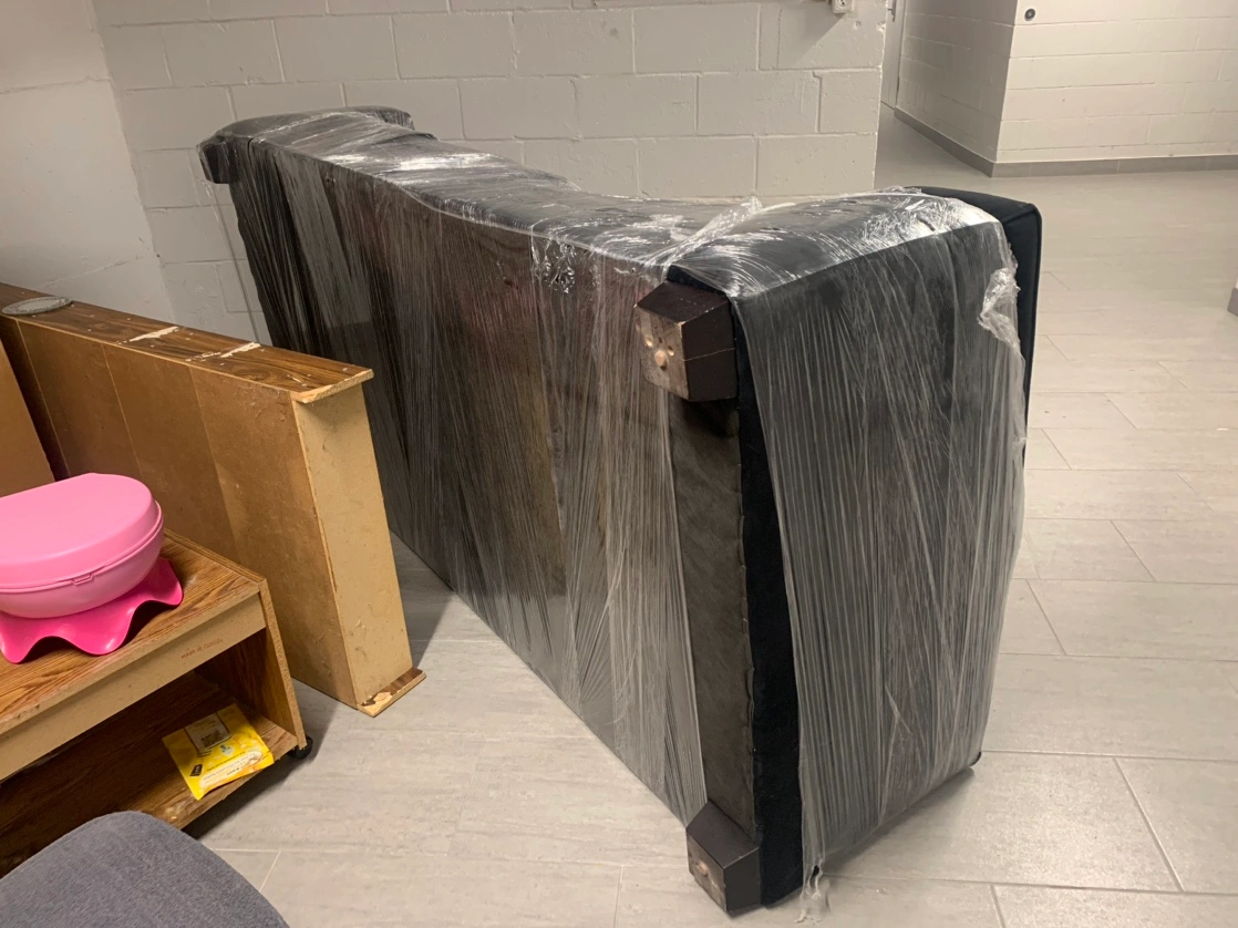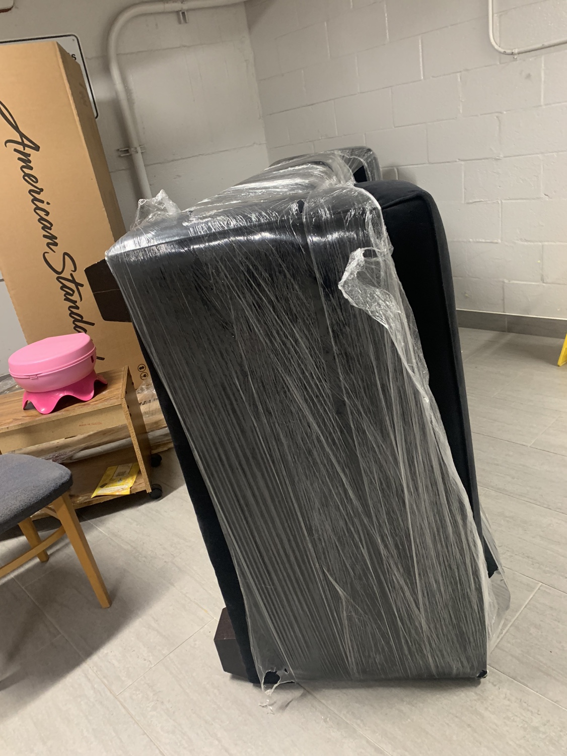 Just moved in to our new appartment, unfortunately the couch did not fit through the elevator. It is a huge black couch, whose dimensions are approximately 7.8 ft in length x 1.97 in height x 3.41 ftin width. It has been used a fair bit but still in great condition. Very comfy.