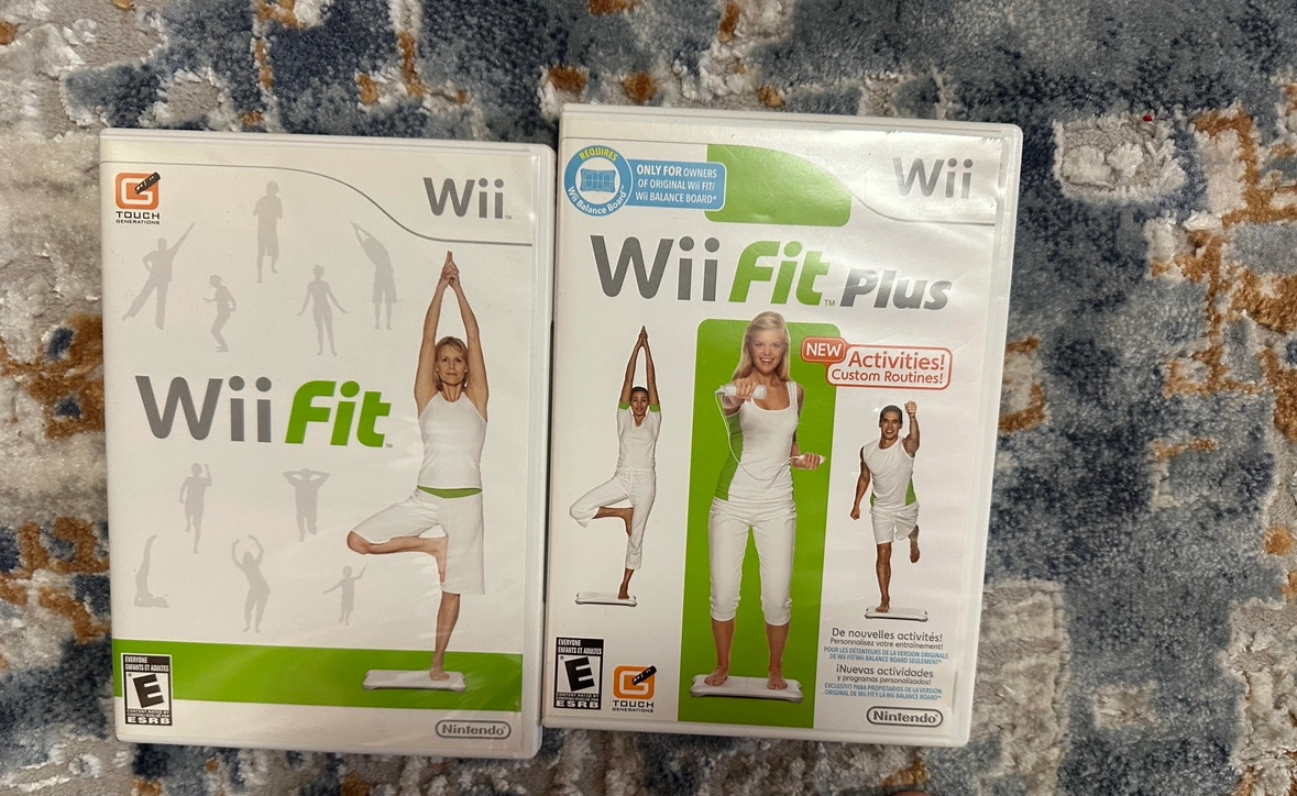 Wii Fit and Wii Fit Plus games for the Nintendo Wii. Both games are in excellent condition and include the original packaging.