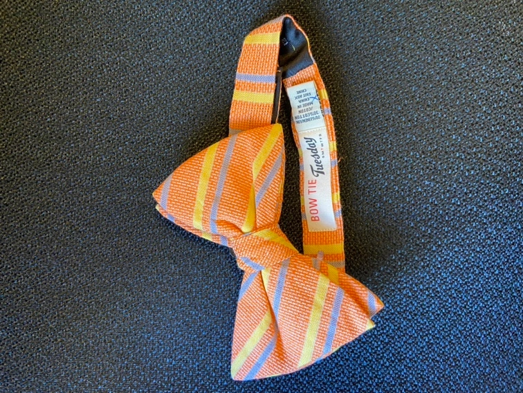 2 Bow Tie Tuesday bow ties:(orange is cotton and blue yellow stripe is polyester)