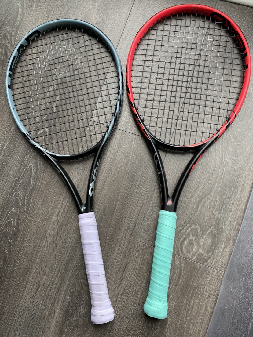 Grip sizes: L3- 4 3/8 (red) and L2- 4-1/4 (black)
