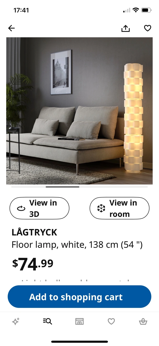 Free light bulbs installed. Like new. White floor lamp. 138 cm (54") tall. Downsizing