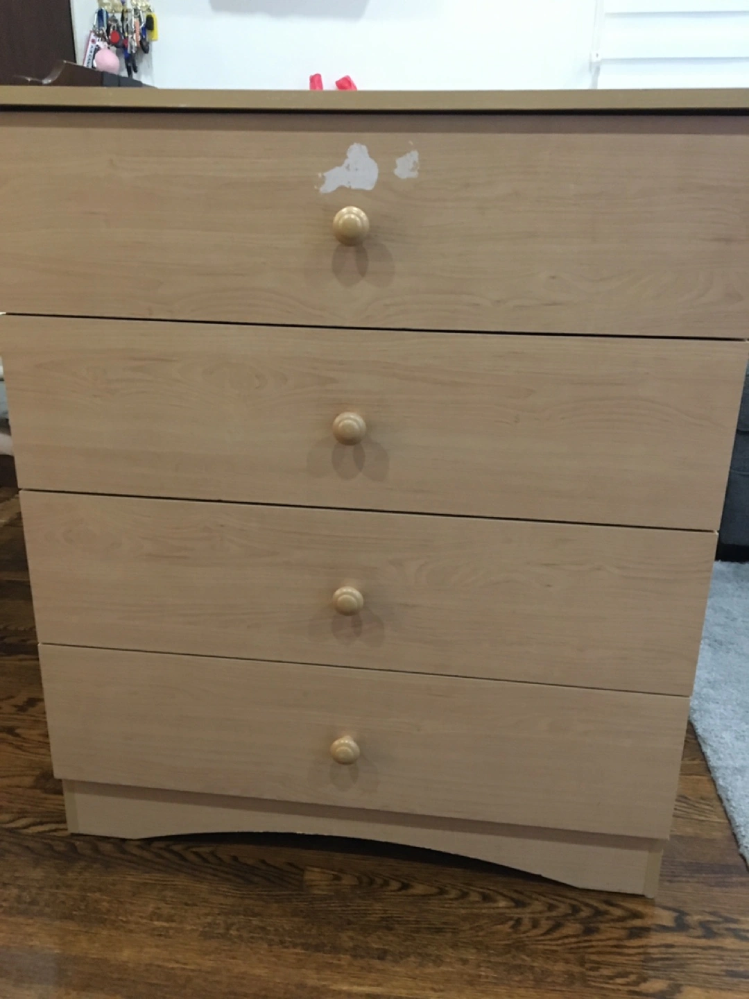 (As for the three drawers on the bottom of the bed. The missing nobs will be installed before your purchase :)
