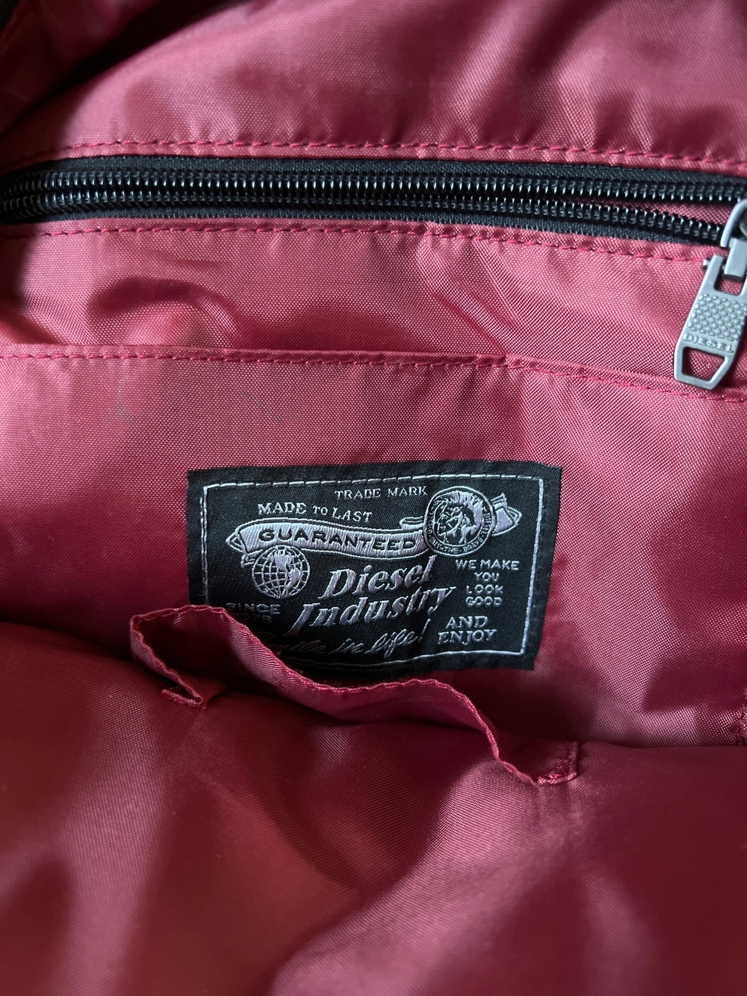A black Diesel sling bag in mint condition. Features a zipper closure, adjustable strap, multiple pockets, denim and microinjection molded rubber giving a 3D pyramid studded effect. Would be a great bag for a man on the go.