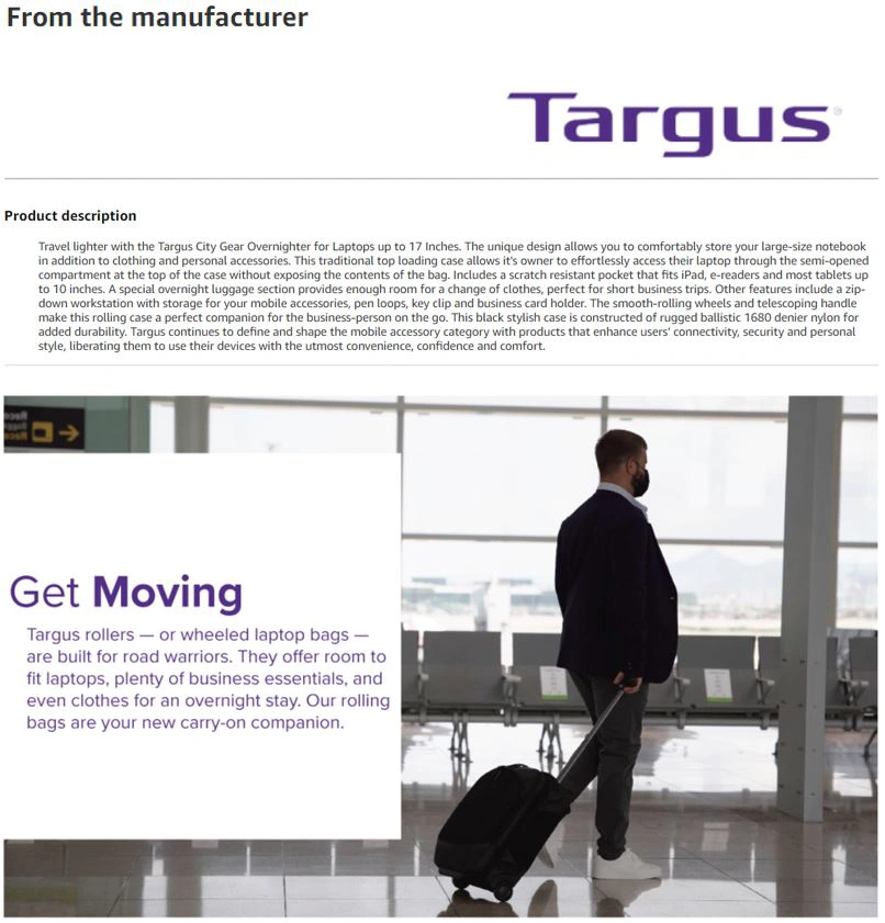 Targus Carrying Case with Wheels, 17.3" – New with Tags!!