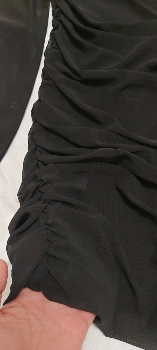Black mesh dress with long sleeves.