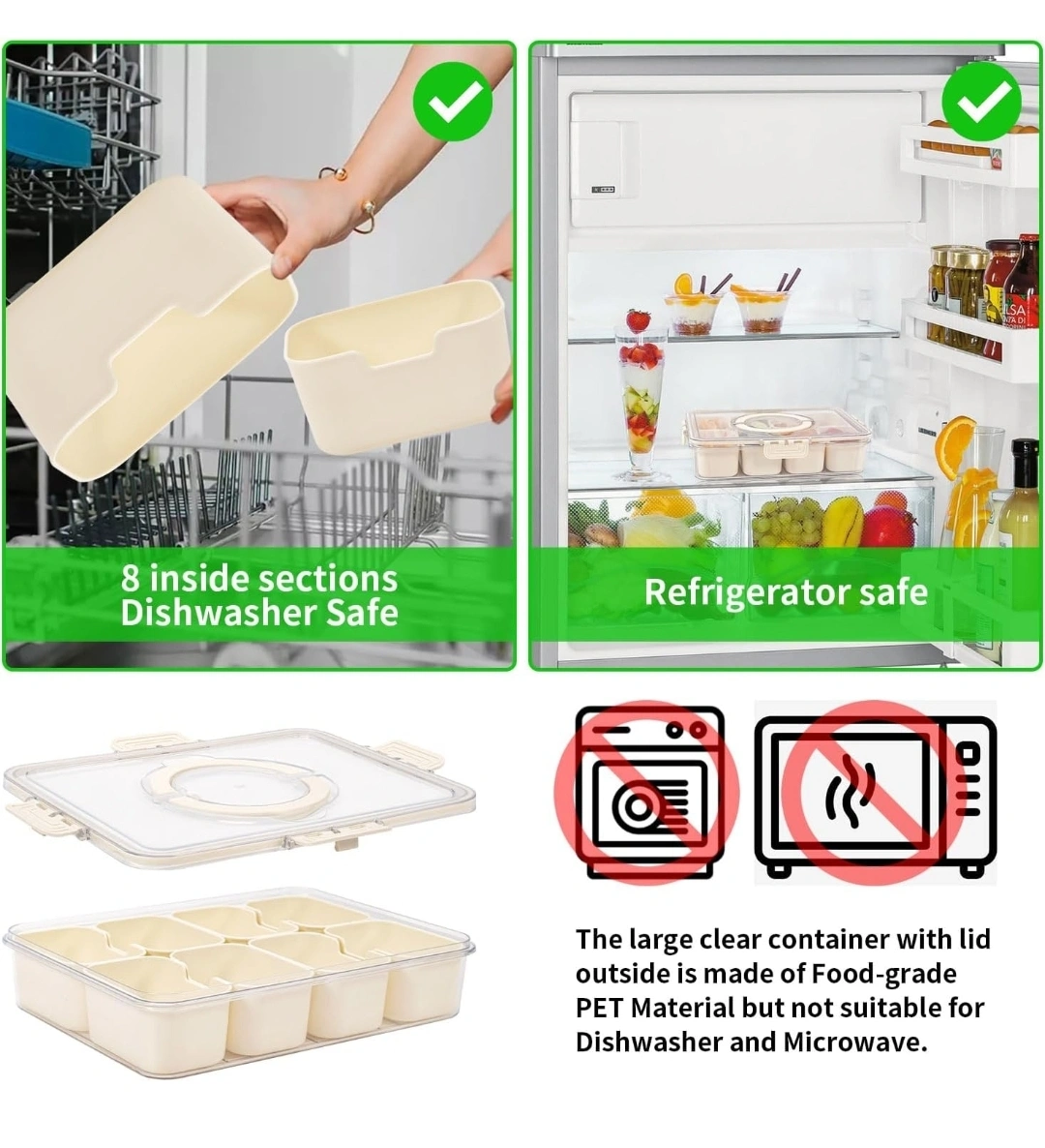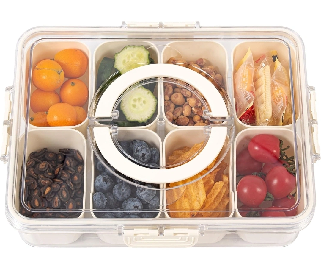 Divided Serving Tray with Lid and Handle, Portable Snack Box Container, Snack Tray with 8 Compartments, Veggie Tray Snack Bowl Charcuterie Board Snackle box Perfect for Party, Travel & Picnic