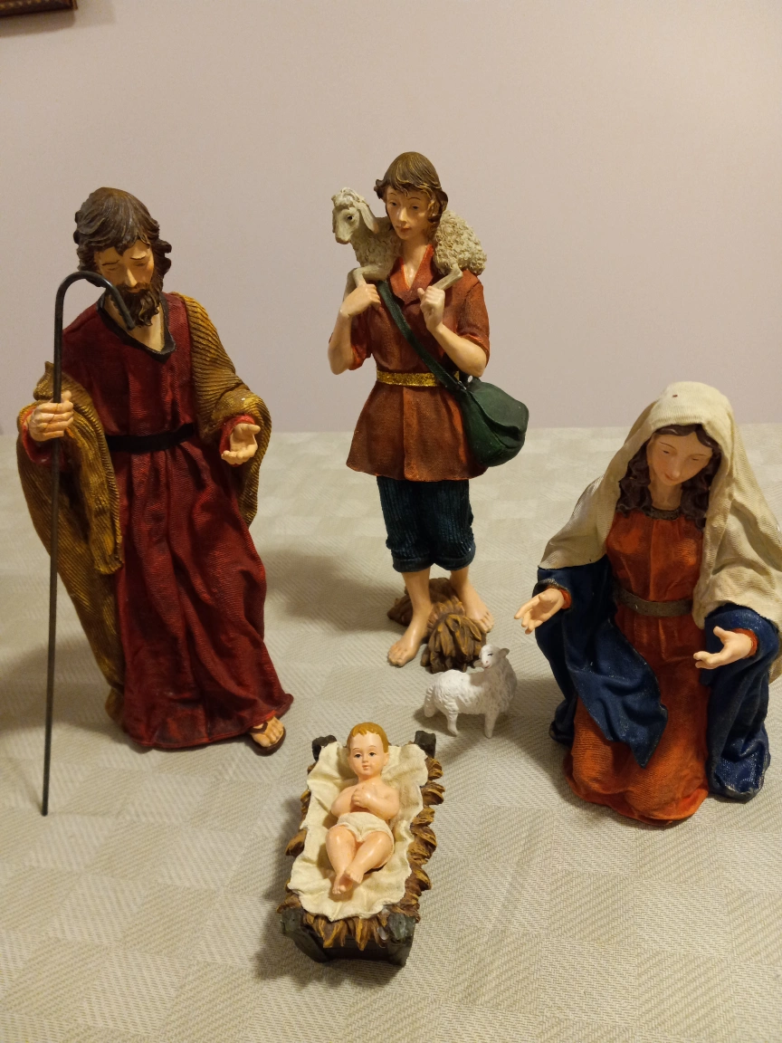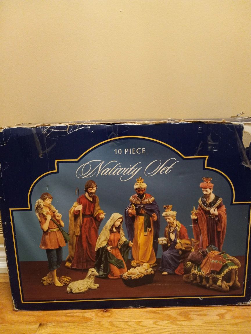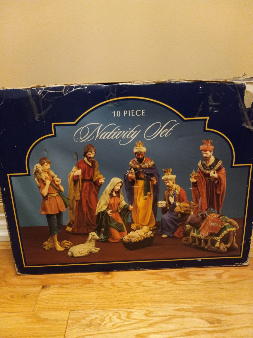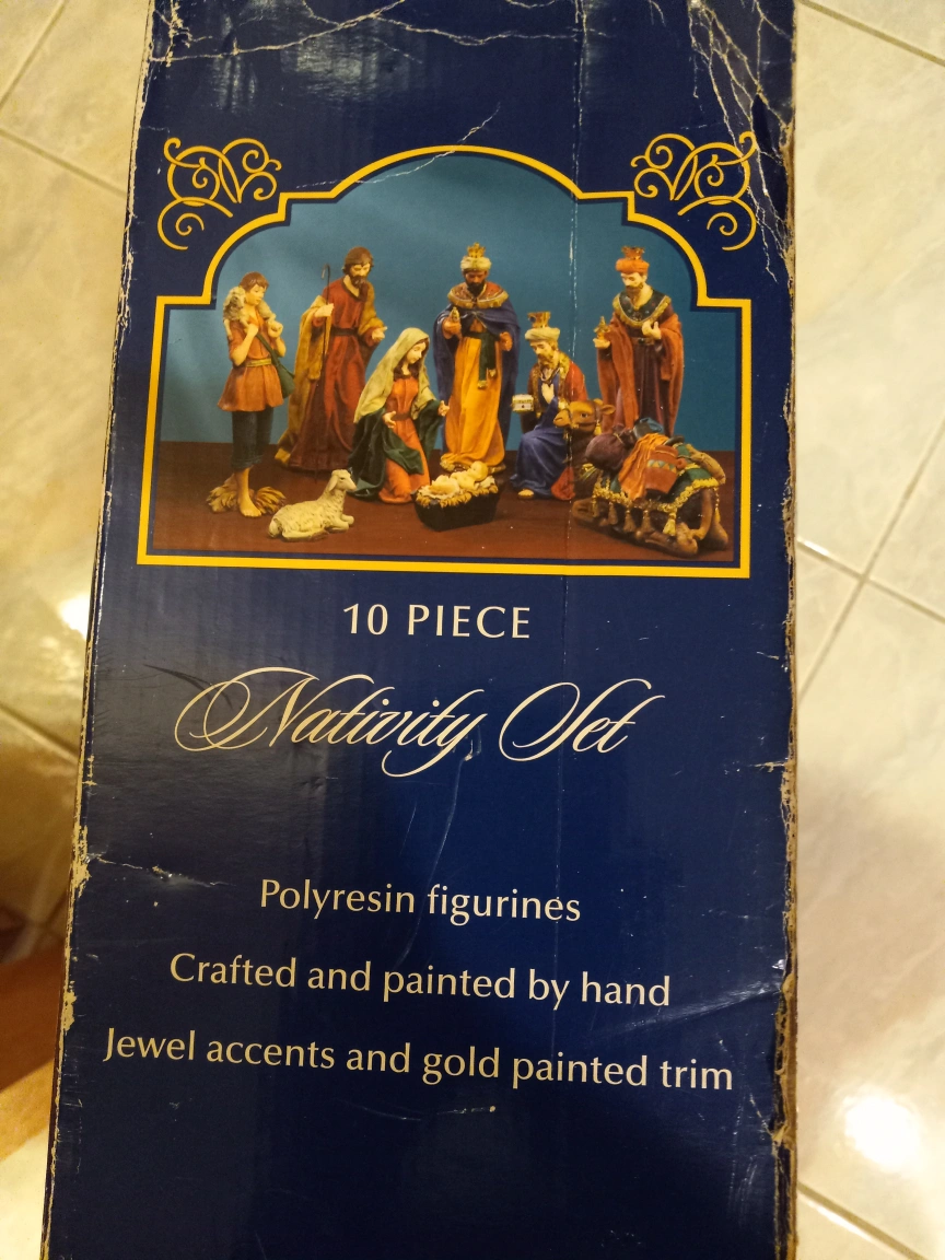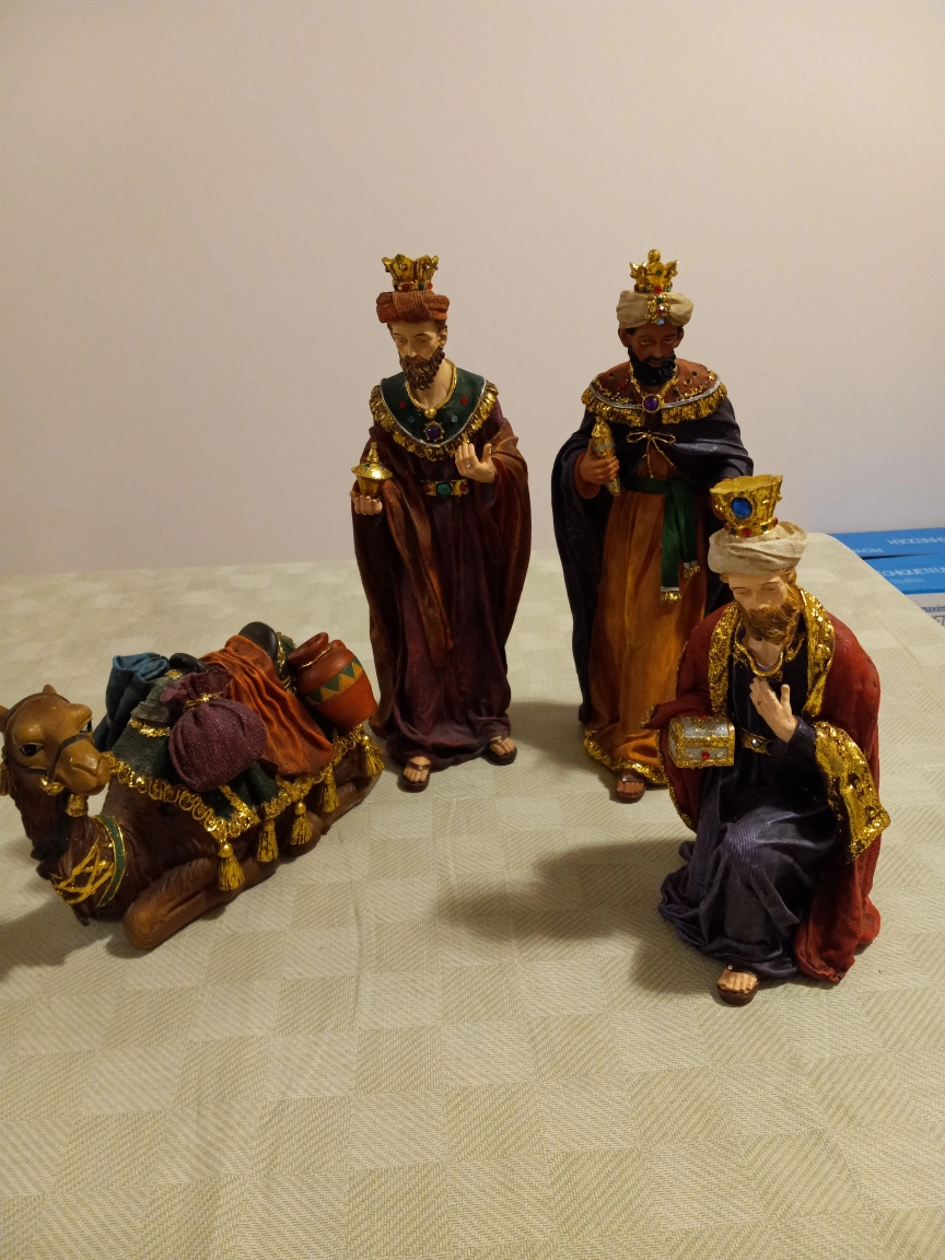 227Beautiful set, jewel accent, crafted and hand painted with gold trim. Large size, tallest figurine is 13 inches.