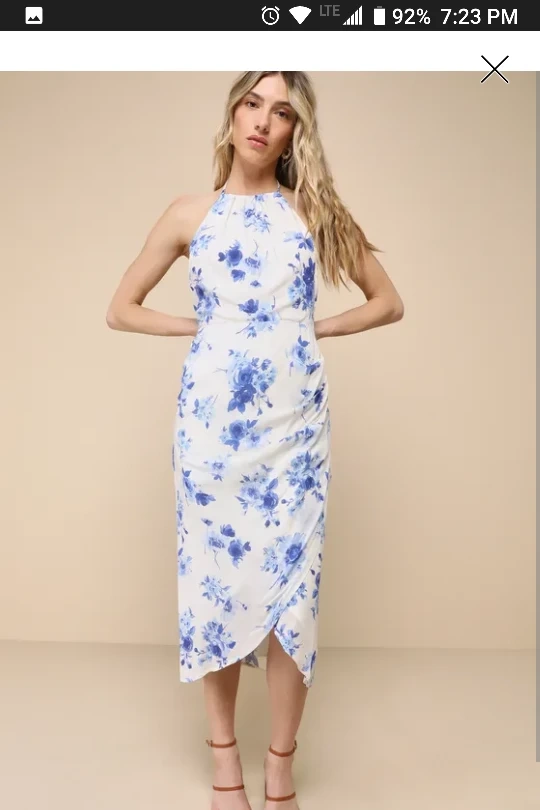 New with tags Lulus Blue & White Tulip Halter Midi Dress size S