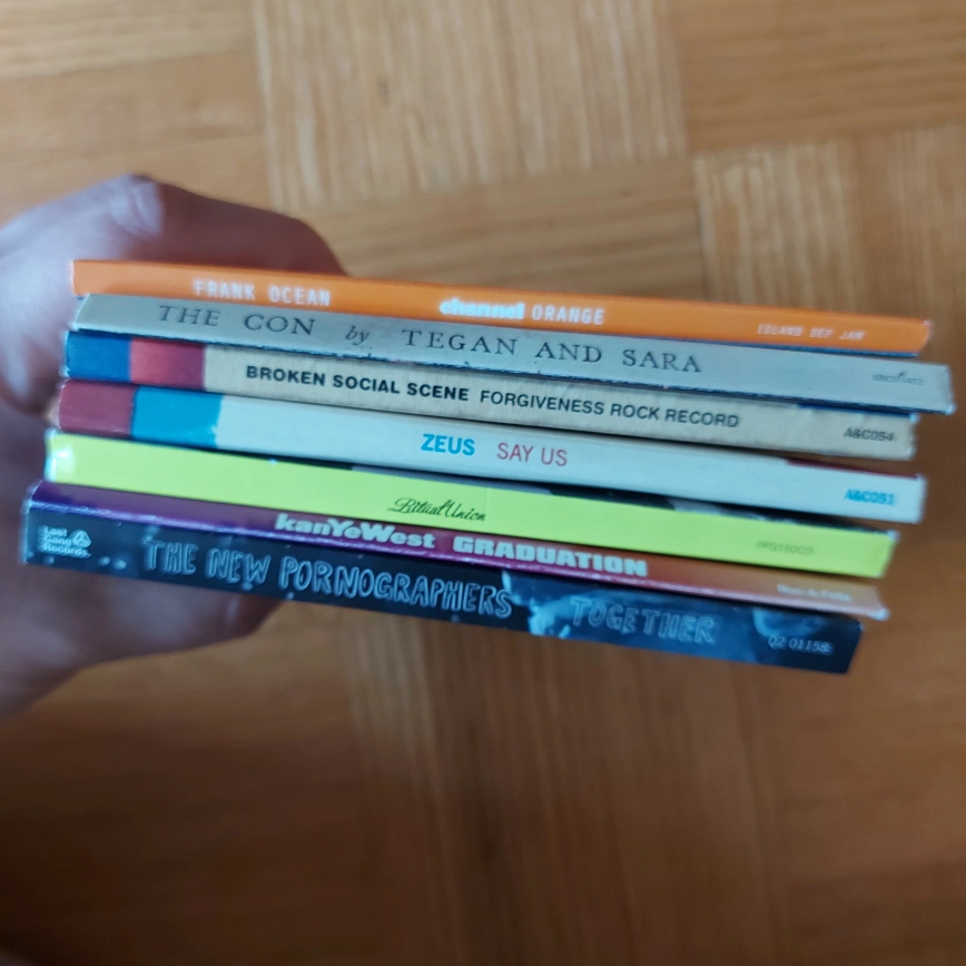 selling as a lot, must take all for $5. Discs like new condition, cases show some wear and tear. channel orange Tegan and Sarah broken social scene Zeus little dragon Kanye the new pornographers Pick up at Victoria Park and Sheppard. I'm free most evenings after 6:30pm during the week. Exact amount in cash please. Bring your own bag.