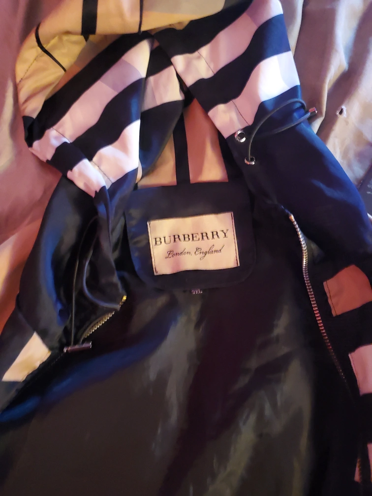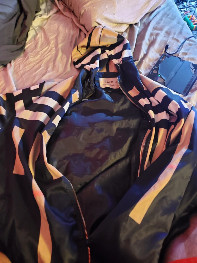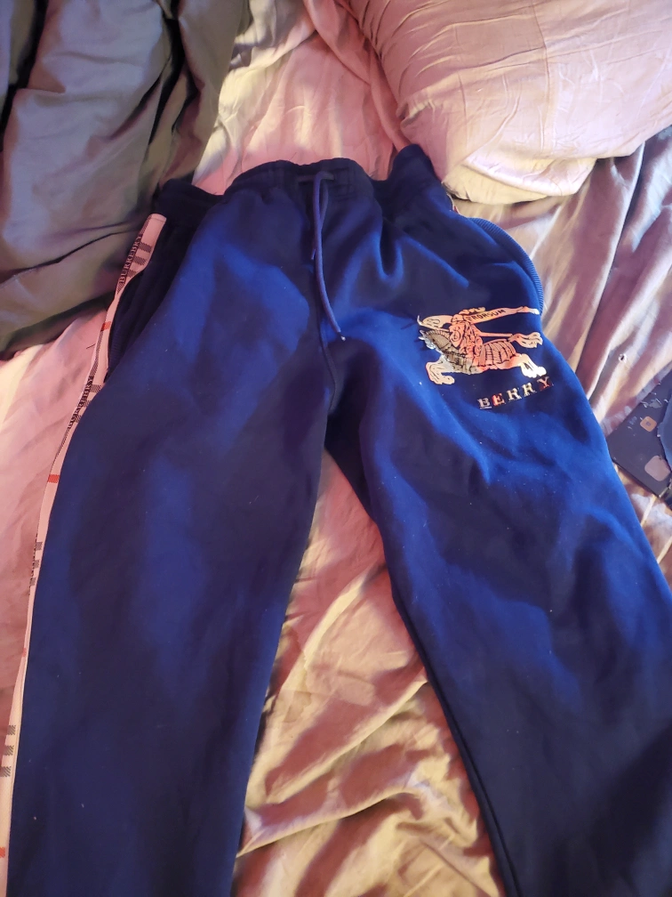 67Blue track pants with Burberry logo and side stripe and burberry windbreaker take as package both for 185$