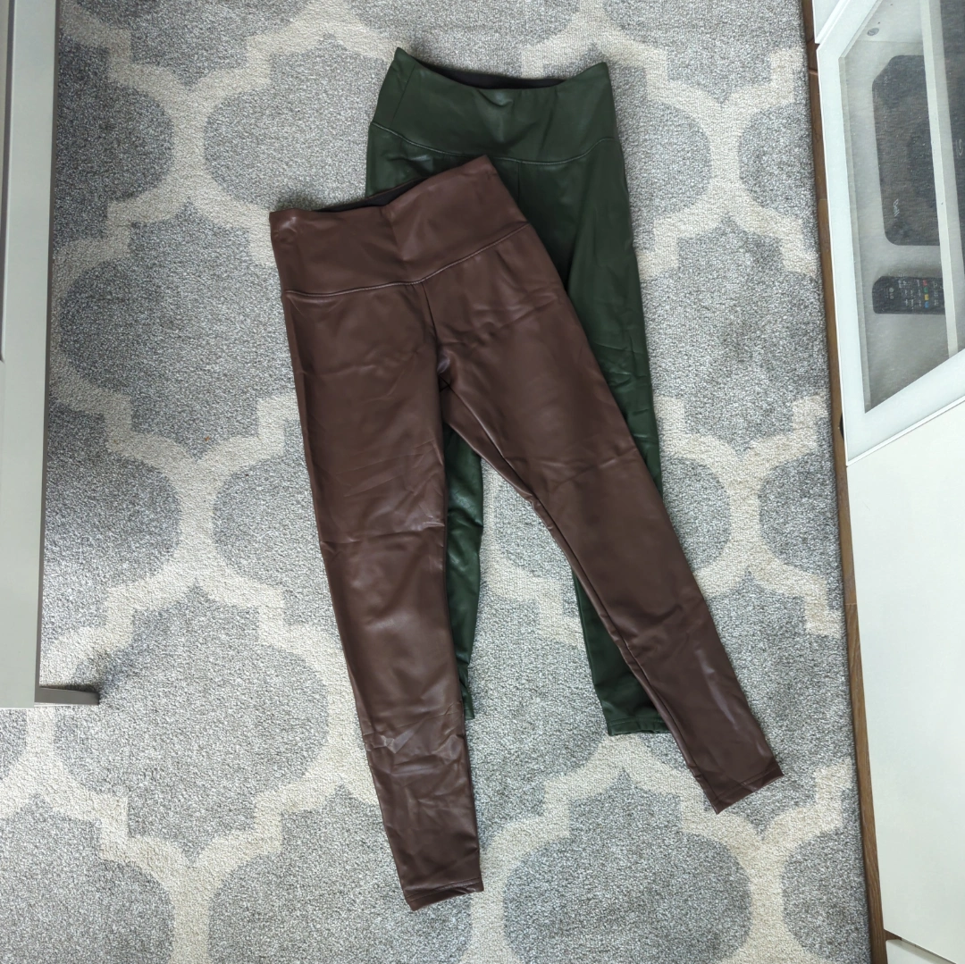 Size small, faux leather leggings. Both worn once and in like new condition.
