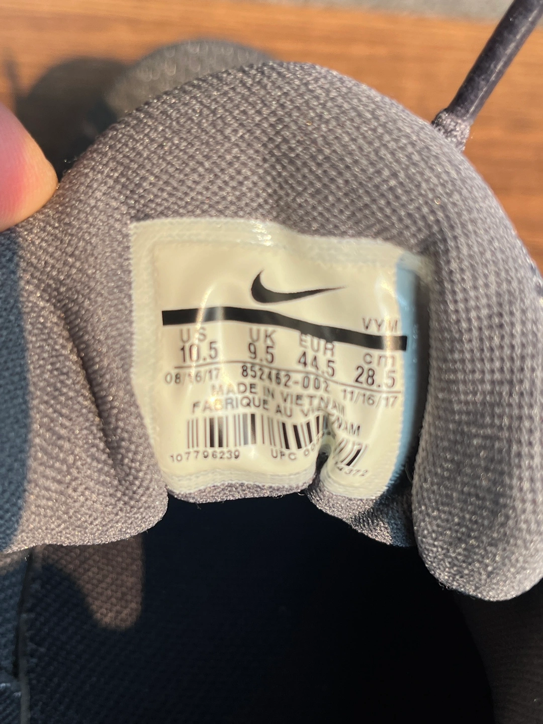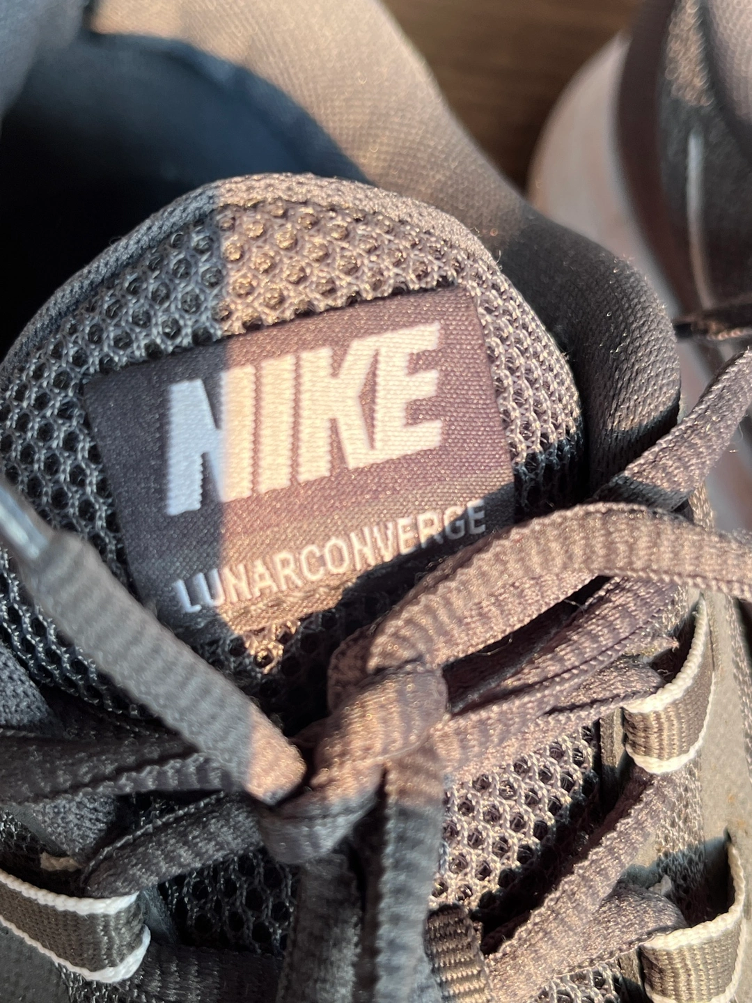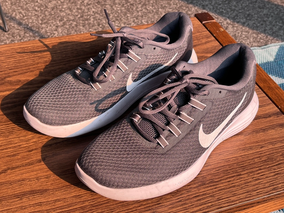 Lightly used Nike Grey running shoes with a white swoosh and white sole.
