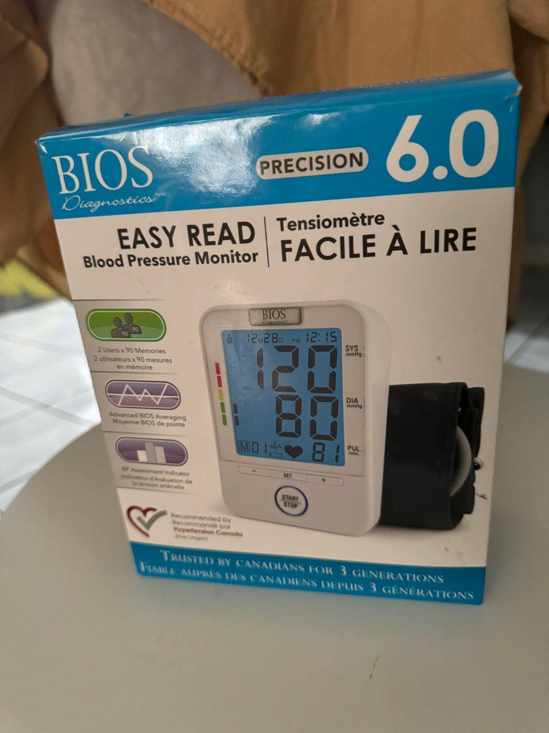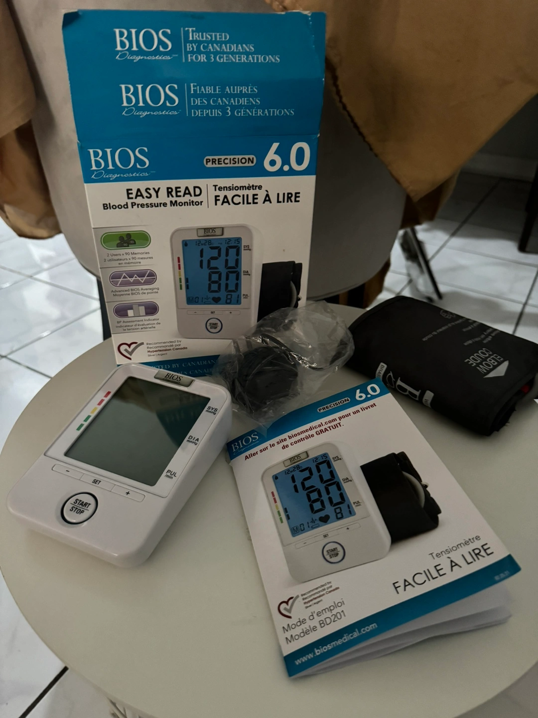 This is a BIOS Diagnostics Easy Read Blood Pressure Monitor. It is a digital blood pressure monitor that is easy to use and read. It comes with a carrying case and a cuff. It comes with batteries or charger. Perfect for travel or home use. Pick up and cash only.