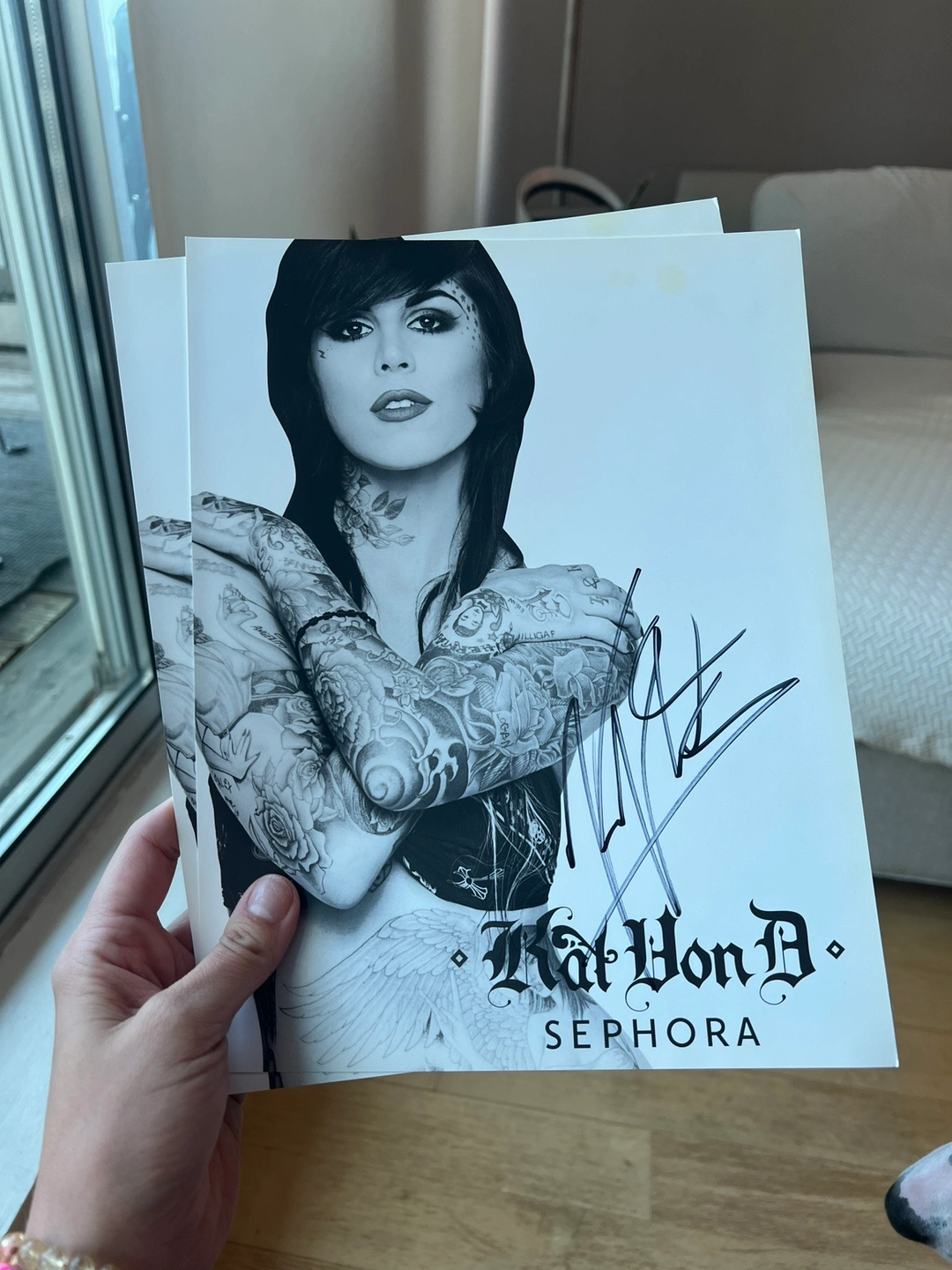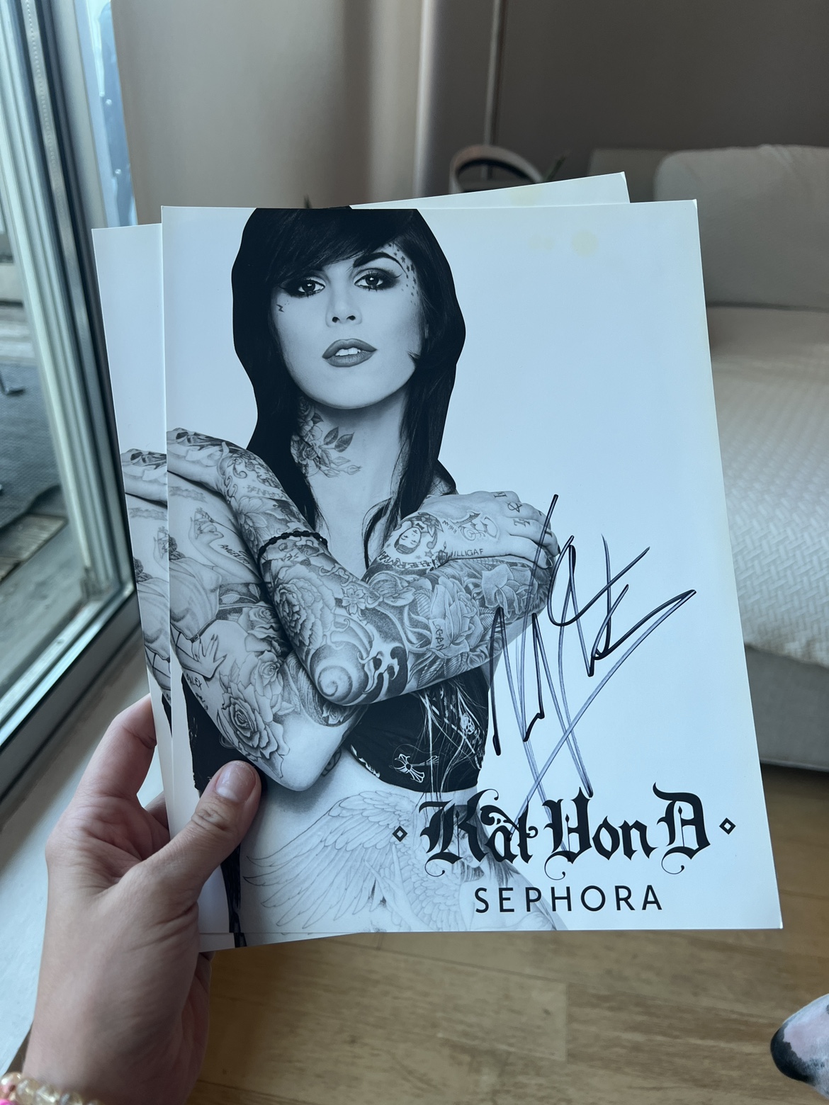 A signed photo of Kat Von D. I have two available. $15 each or both for $20. A little bit of yellowing on the picture but overall I’m very good condition