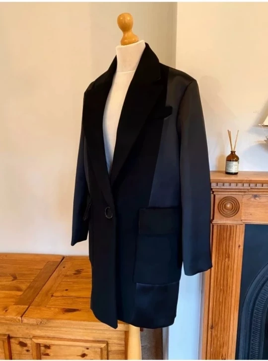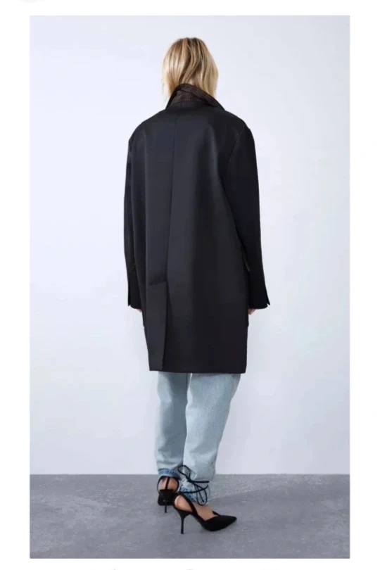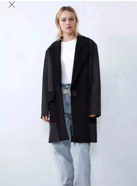 1000+Brand New with Tag Zara black wool blend trench coat size XS oversize look, can fit S-M 39% wool, 55% polyester, 6% other measurements -- shoulder 17" sleeve 22.5" chest up to 40" length 36" Pick up in downtown close to St Patrick station or Yong/Bloor