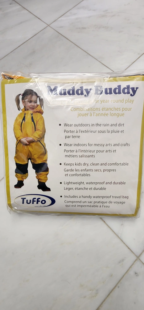 Tuffo Muddy Buddy Rain Suit keeps your child clean and dry, indoors and outdoors