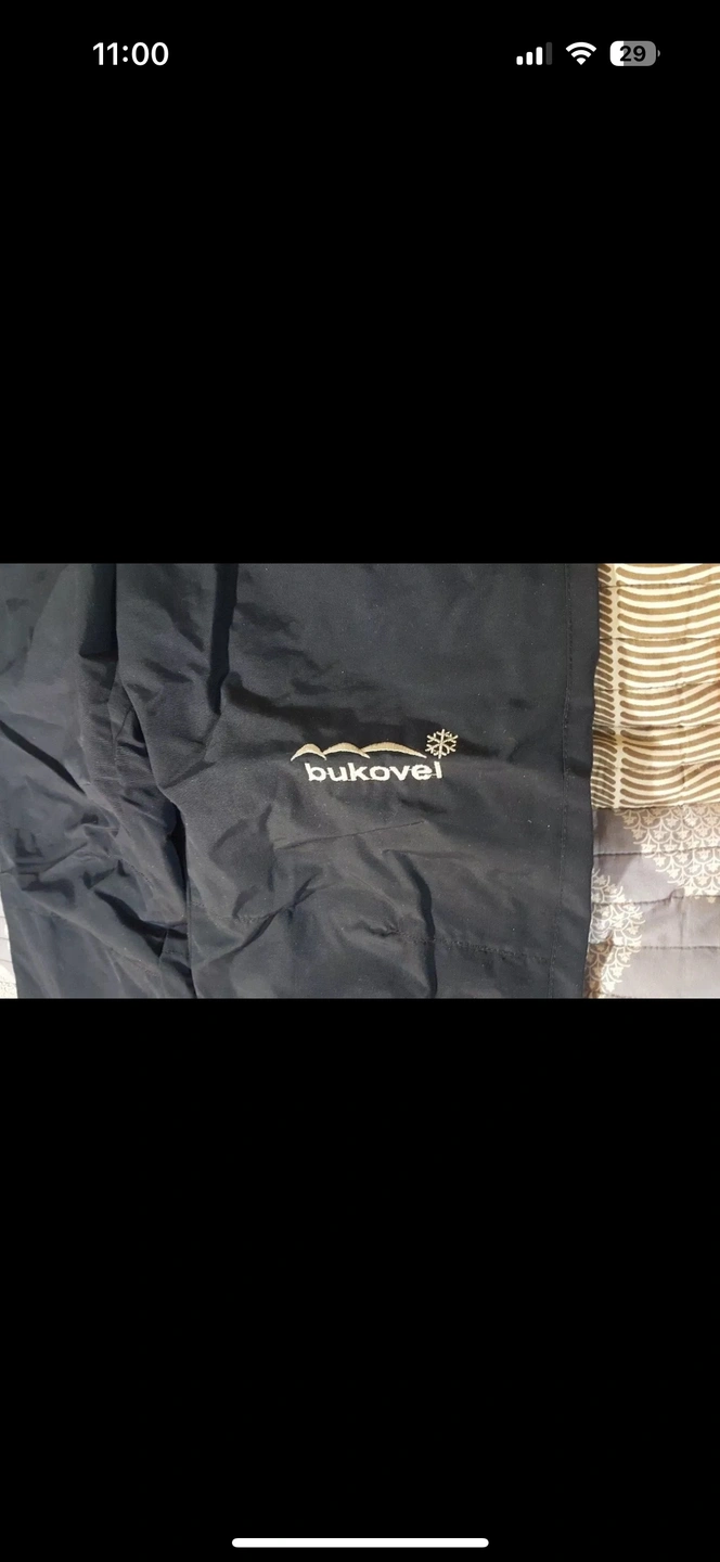 "Bukovel" sign on left calf; "snowwear" on the bottom.