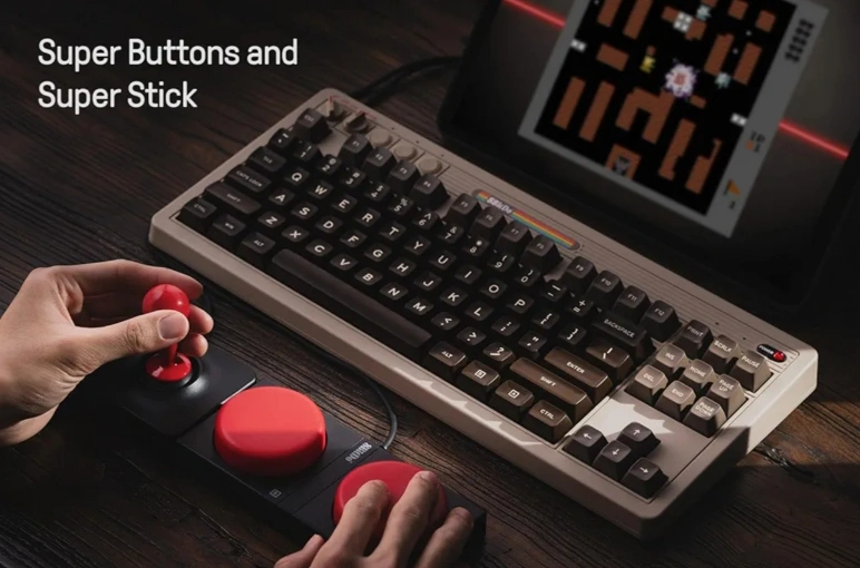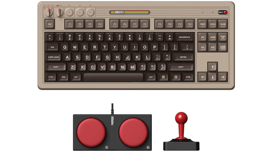 8Bitdo 87 Keys Retro Mechanical Keyboard, Bluetooth/2.4G/USB-C Hot Swappable Gaming Keyboard with Dual Super Programmable Buttons and Super Stick, Volume knob for Windows and Android - C64 Edition