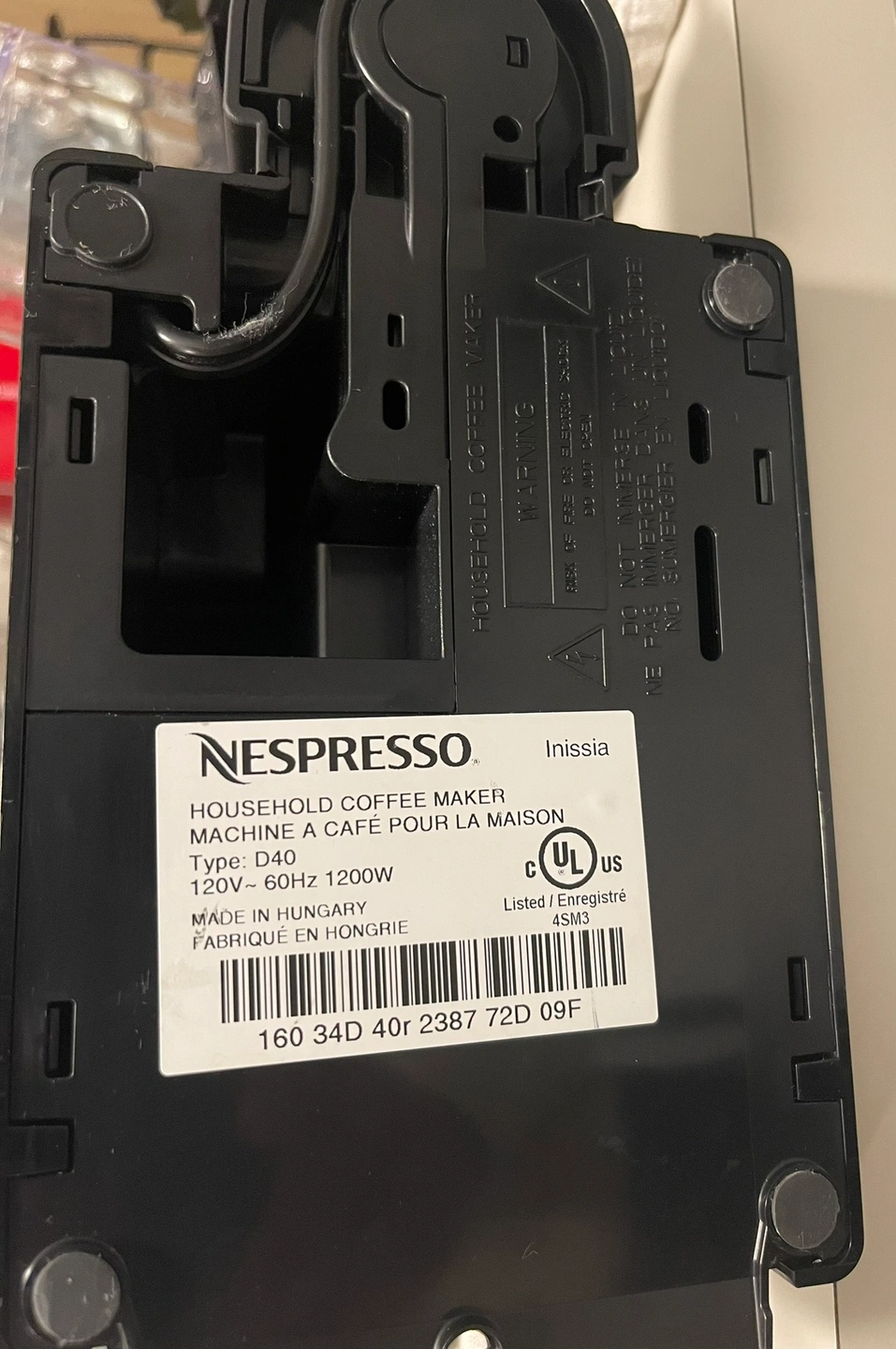 Black Nespresso Inissia coffee maker with one heat proof glass cup. In good working condition. Small pods. No longer needed like my ex!π